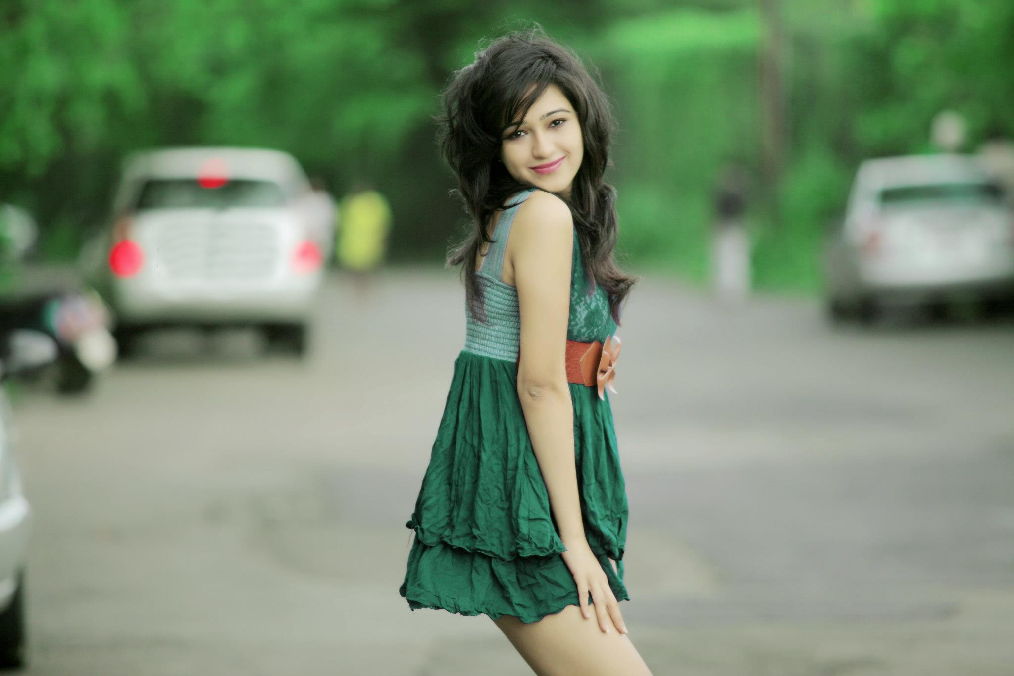Скачать обои для рабочего стола Милая девушка в зелёном платье и фото