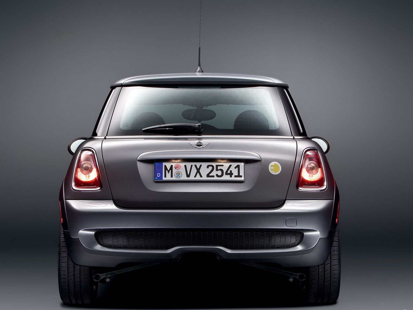 Скачать обои для рабочего стола Mini cooper E вид авто сзади и фото