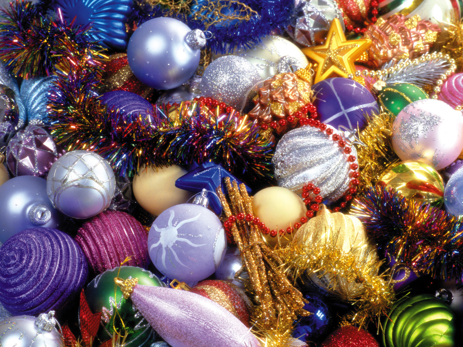 Скачать обои для рабочего стола Мишура, шарики, новый год,. и фото