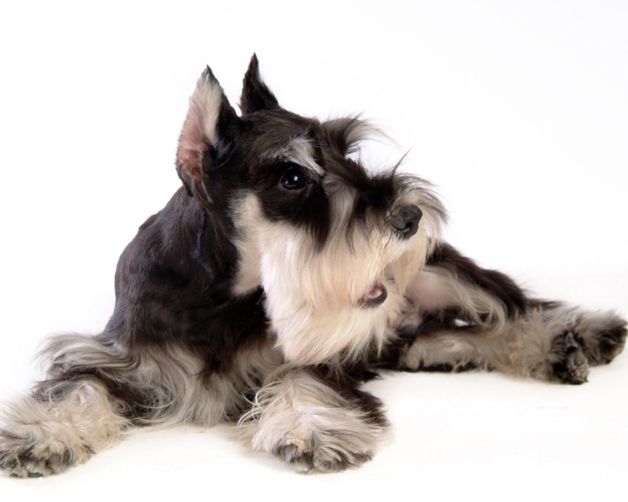 Скачать обои для рабочего стола Миттельшнауцер лежит и фото