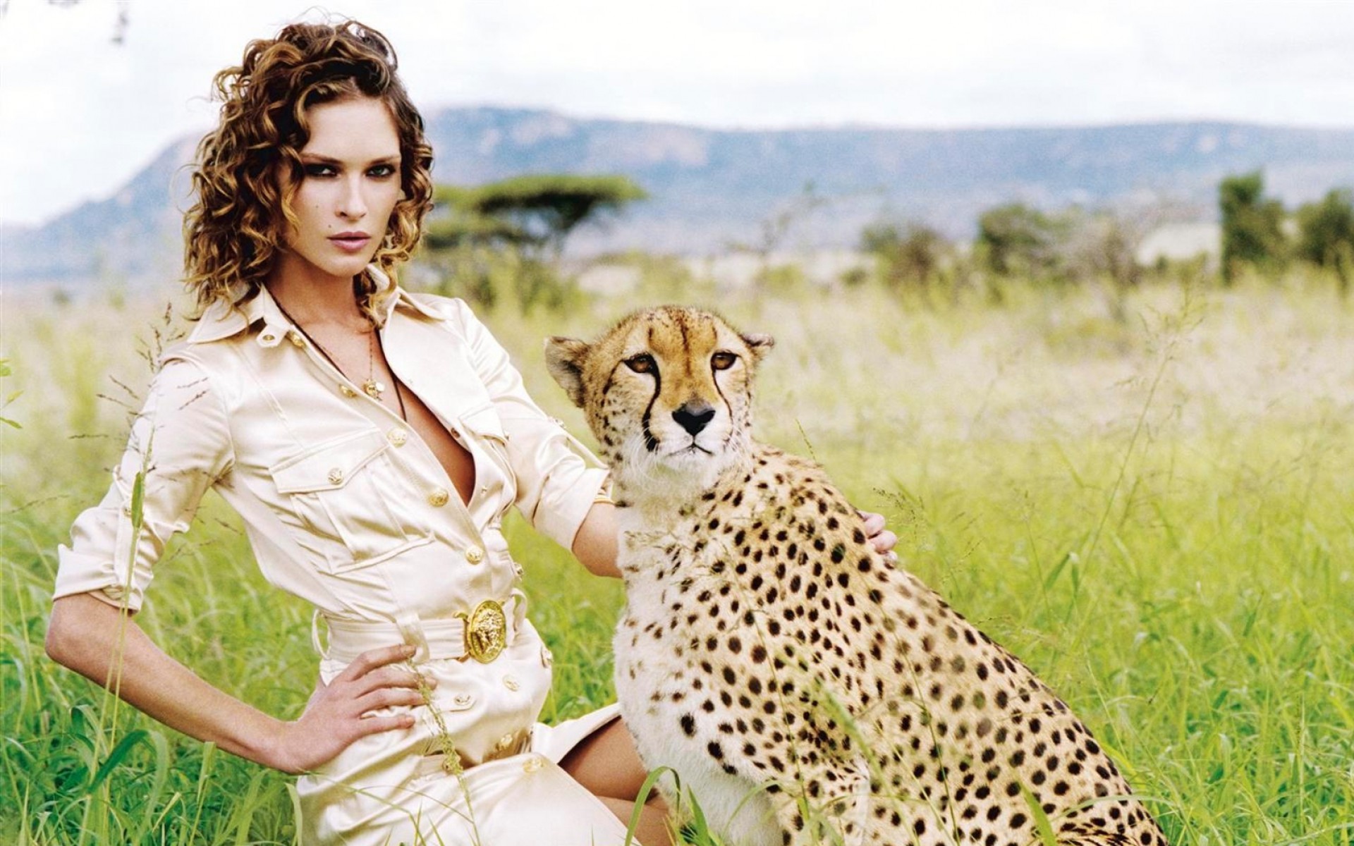 Скачать обои для рабочего стола Модель с леопардом и фото