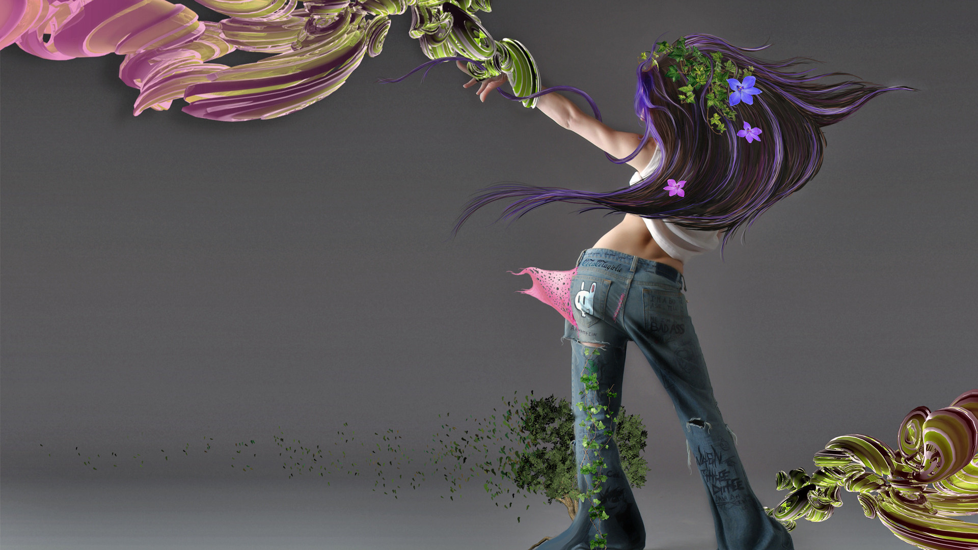 Скачать обои для рабочего стола Модная девица и ветер и фото