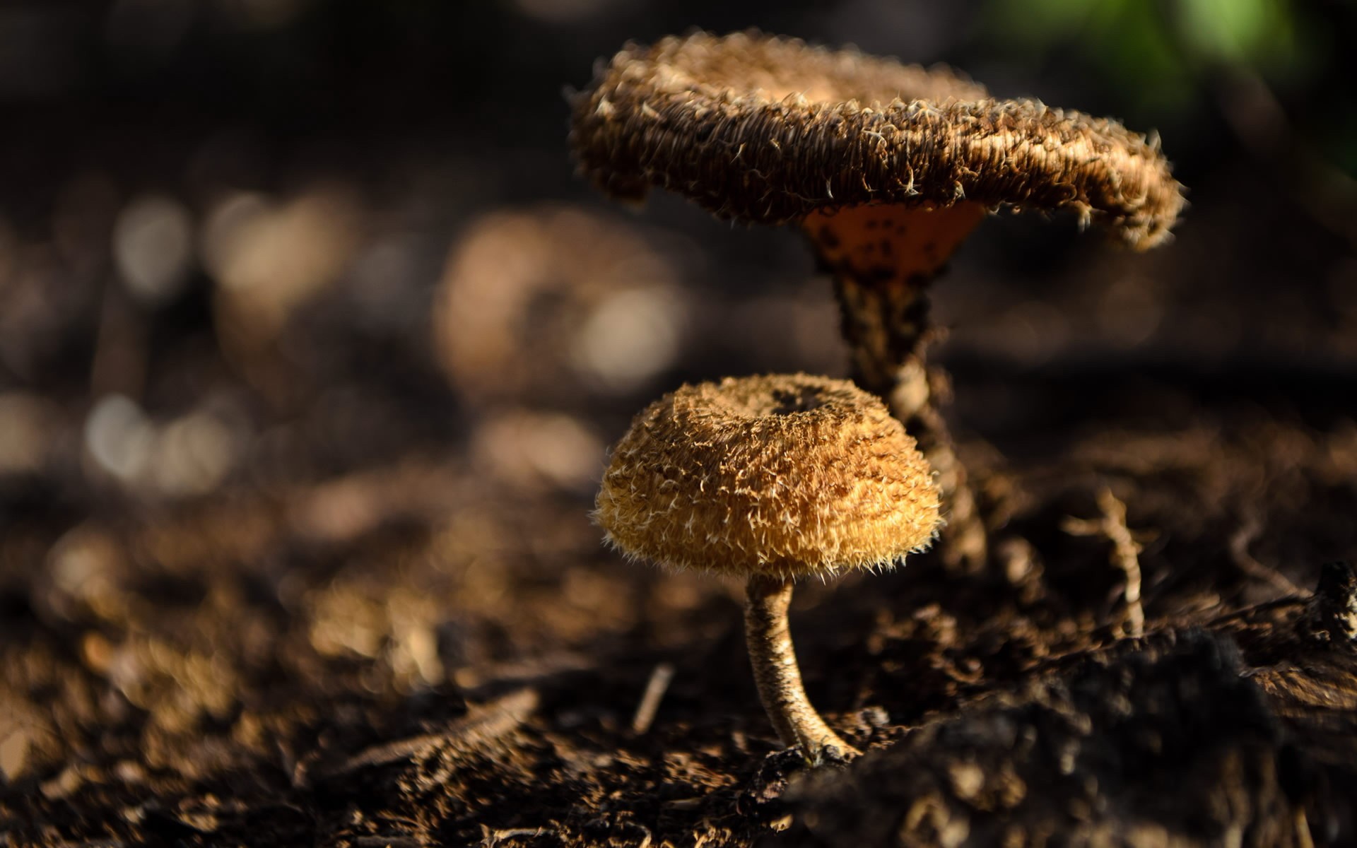 Скачать обои для рабочего стола Мохнатые грибочки растут на лужайке и фото