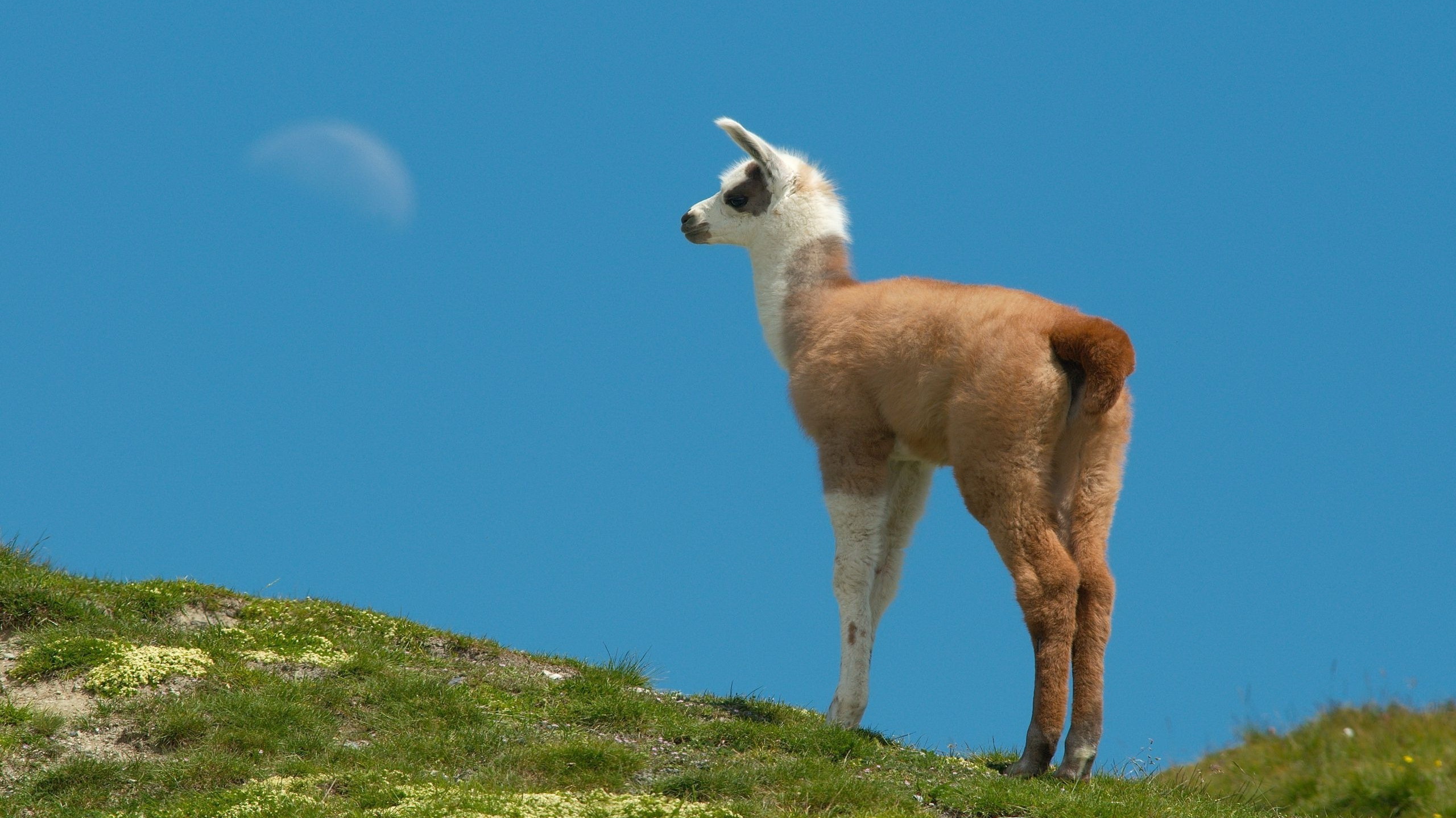 Скачать обои для рабочего стола Молодая лама на холме и фото