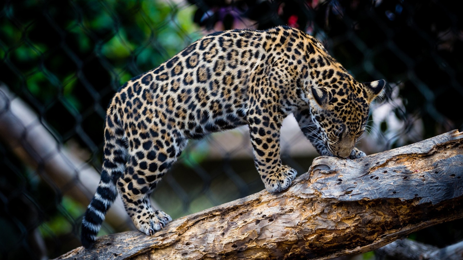 Скачать обои для рабочего стола Молодой хищник на сухoм стволе дерева и фото