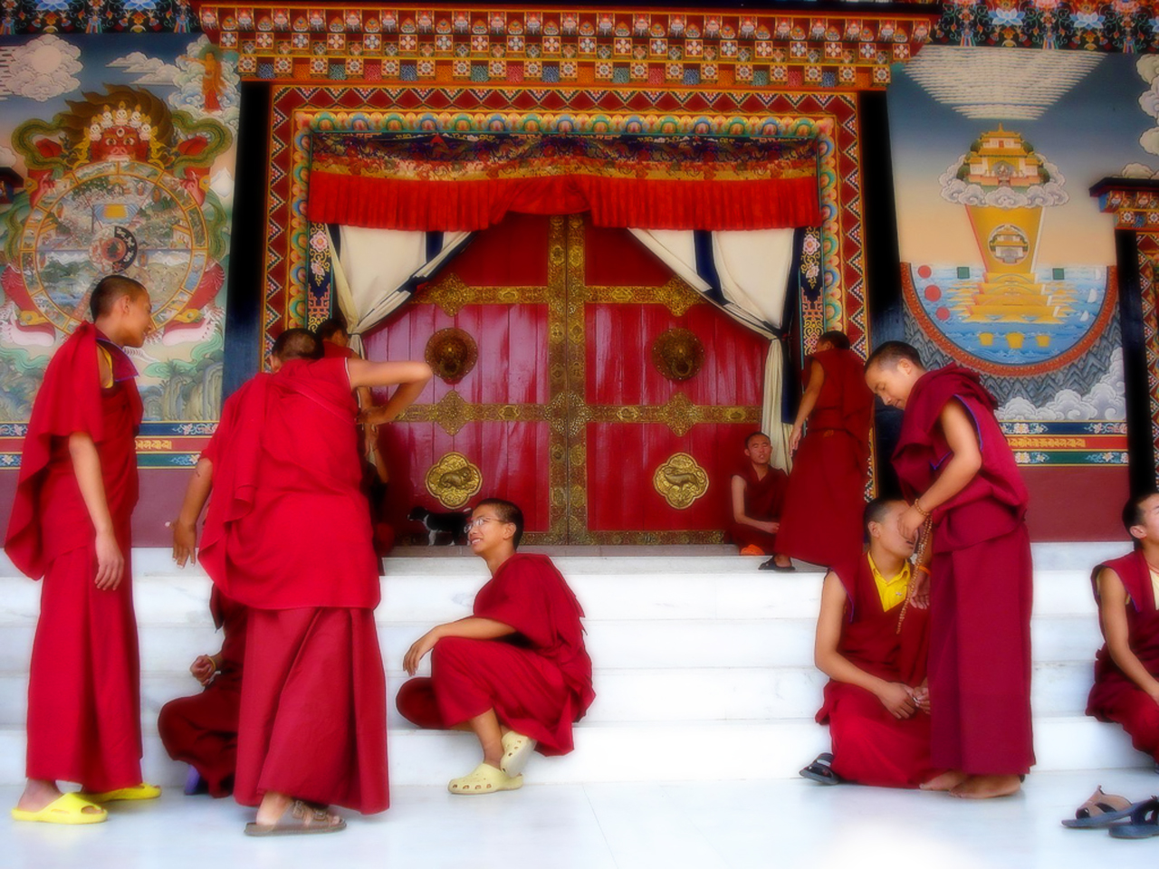 Скачать обои для рабочего стола Монахи перед храмом и фото