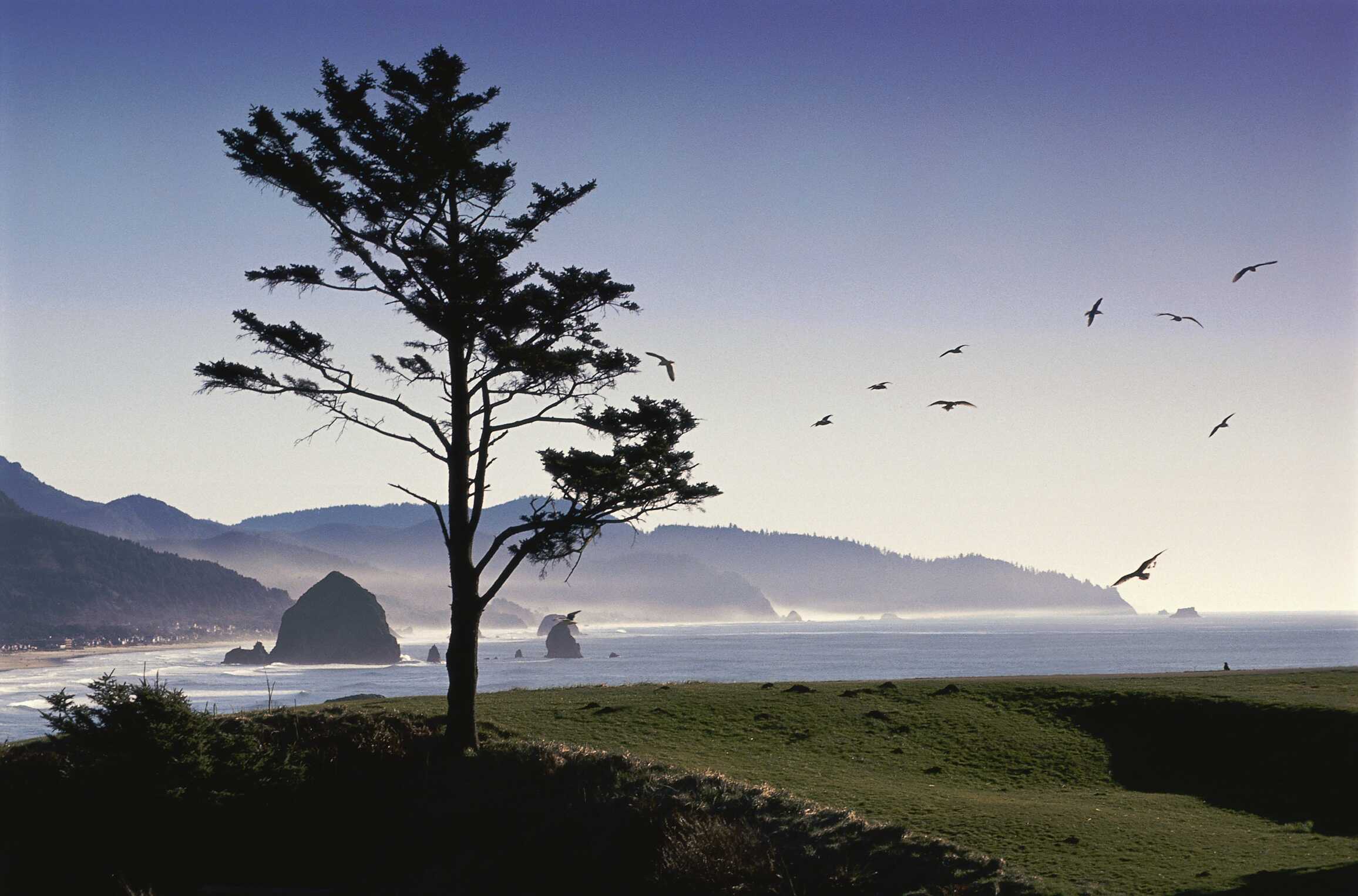 Скачать обои для рабочего стола Море и высокая ель и фото