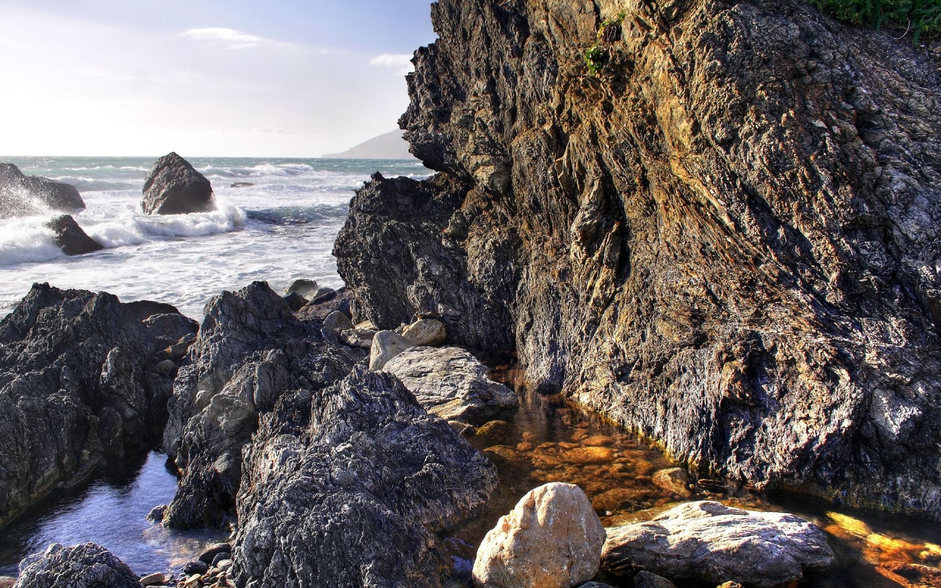Скачать обои для рабочего стола Море, камни, небо и фото