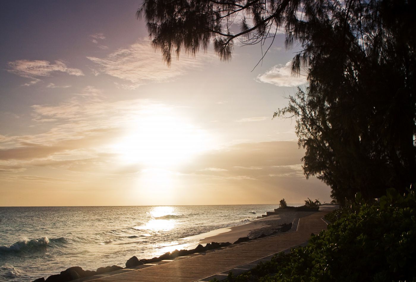 Скачать обои для рабочего стола Море, набережная и закат и фото