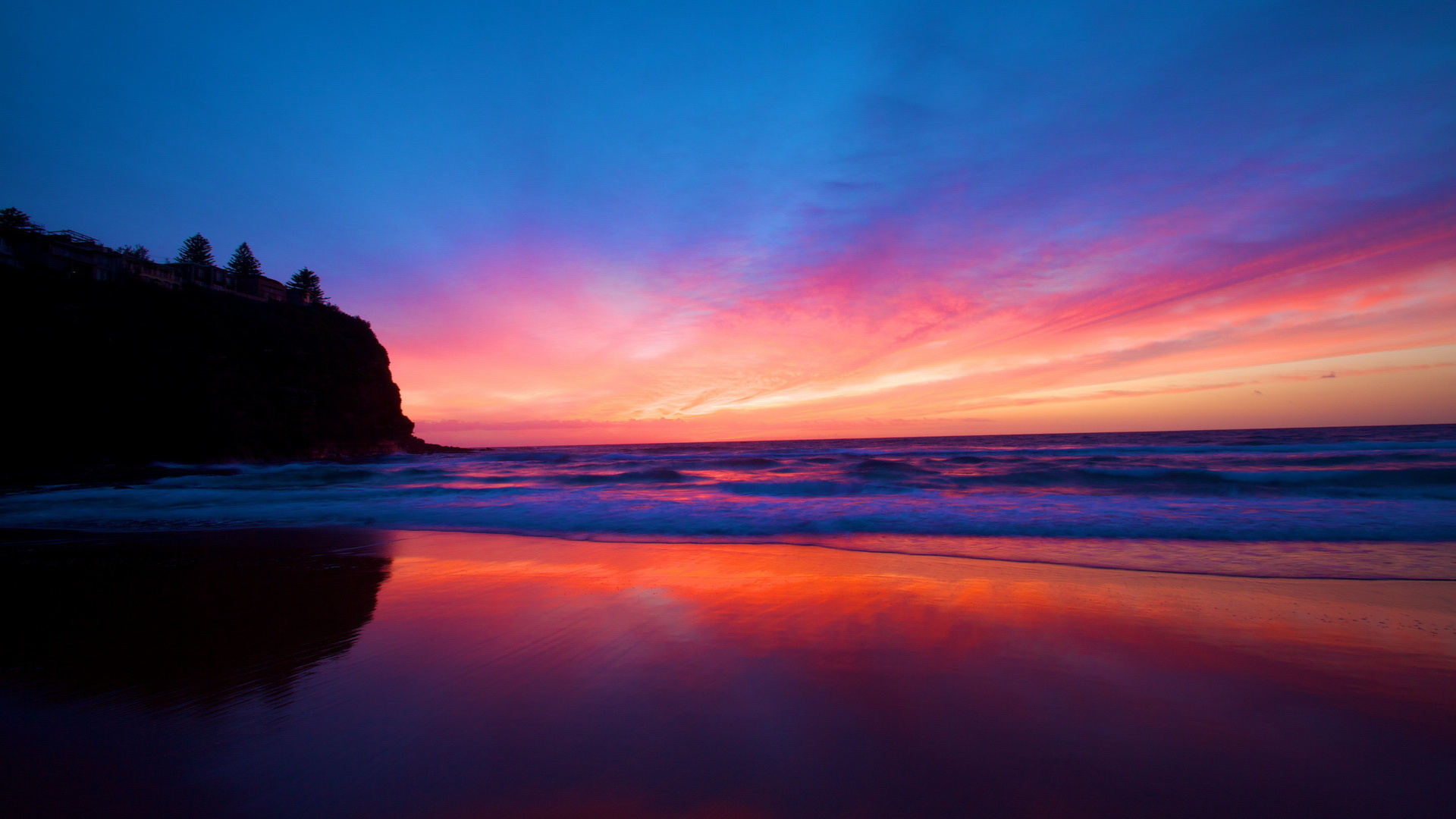 Скачать обои для рабочего стола Море, нежные краски восхода и фото