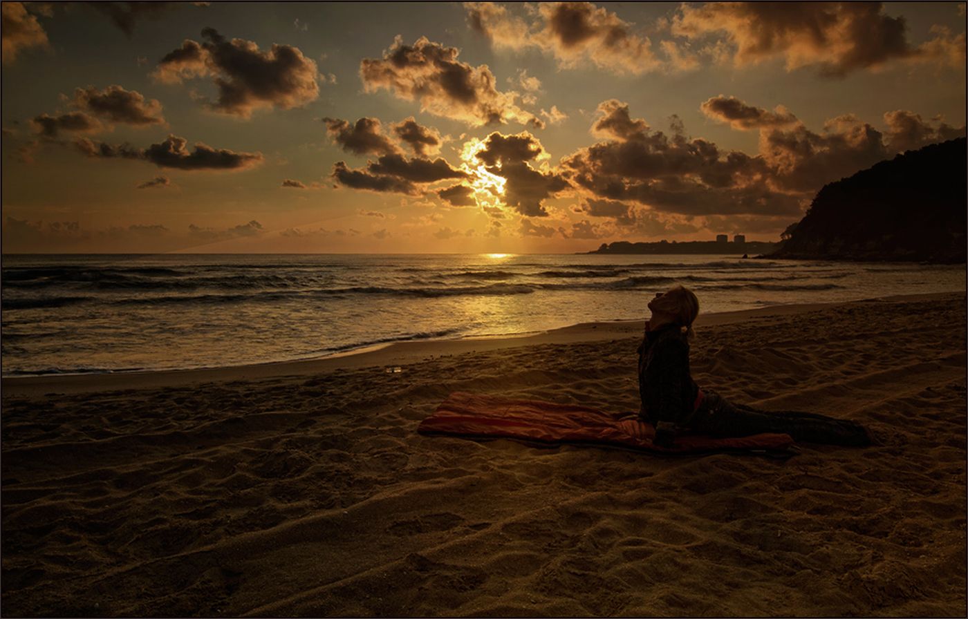 Скачать обои для рабочего стола Море, закат и девушка и фото