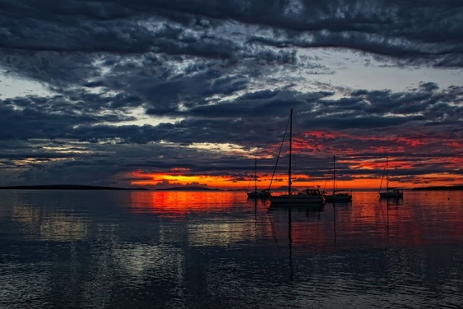 Похожие обои на Море, закат и парусники: