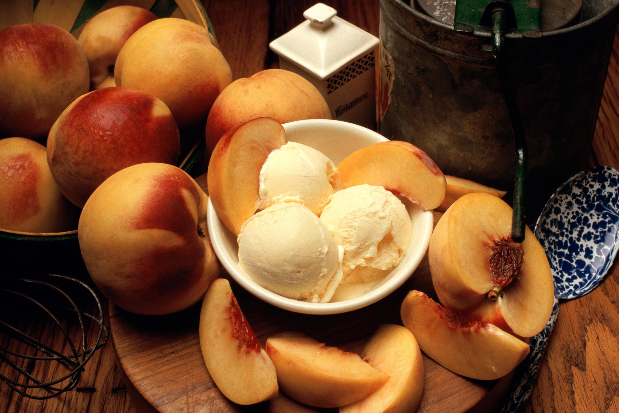 Скачать обои для рабочего стола Мороженое и персики и фото