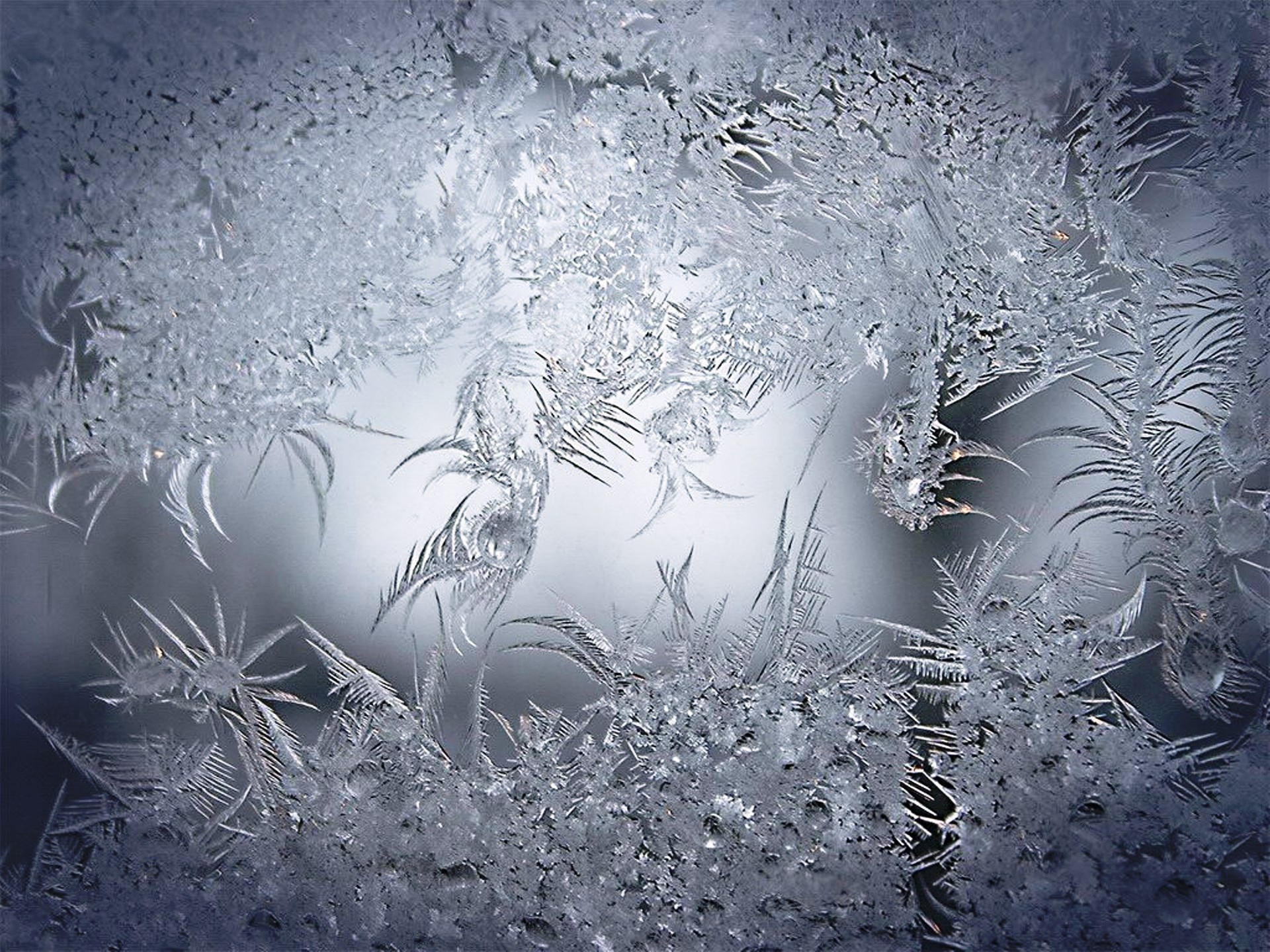 Скачать обои для рабочего стола Морозные серебряные узоры на стекле и фото