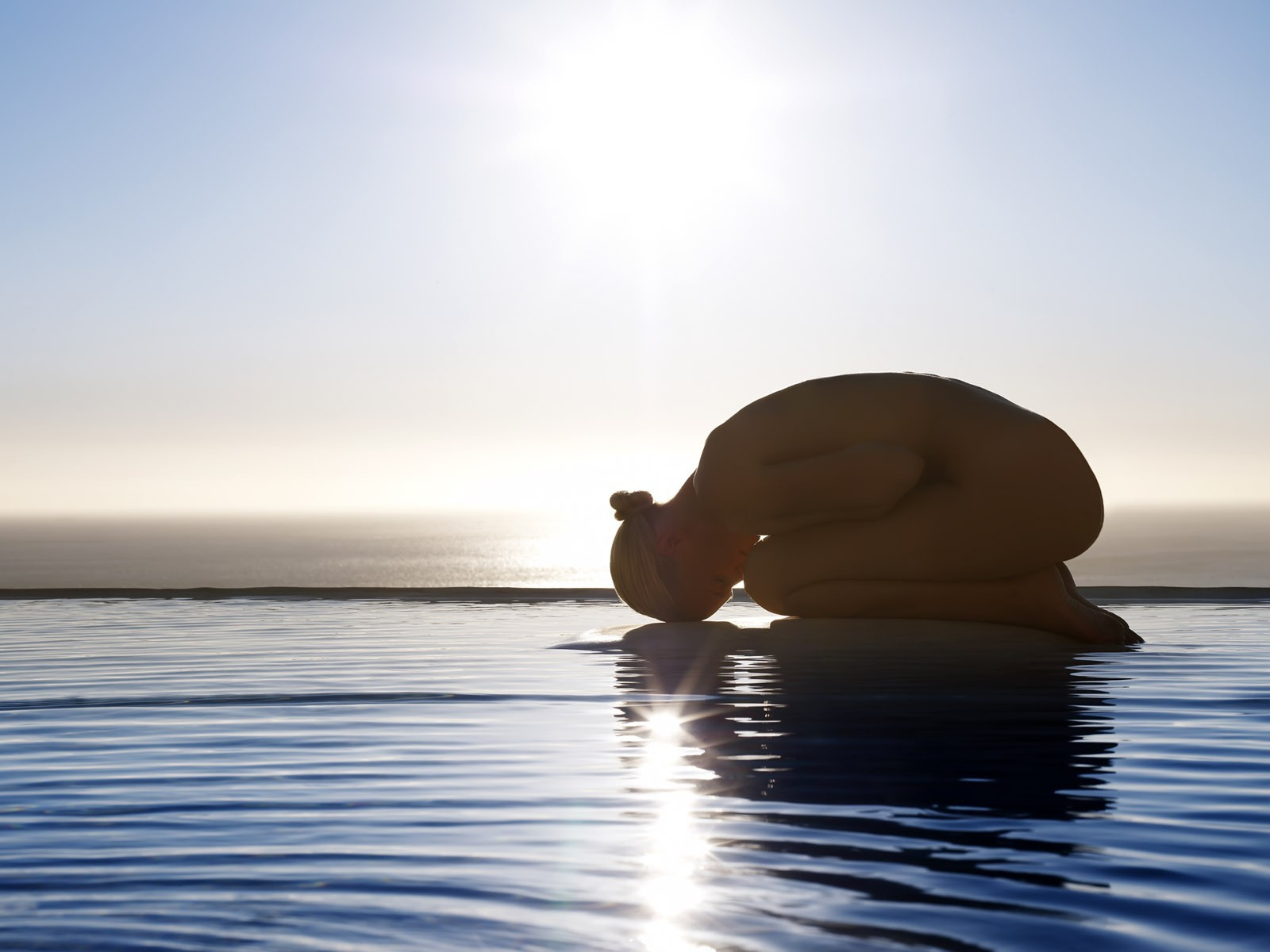 Скачать обои для рабочего стола Морская медитация девушки на закате и фото