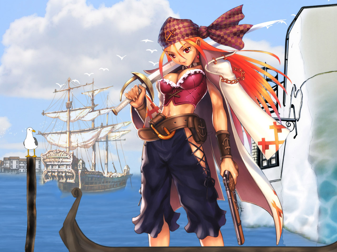 Скачать обои для рабочего стола Морская пиратща с пистолетом и саблей и фото