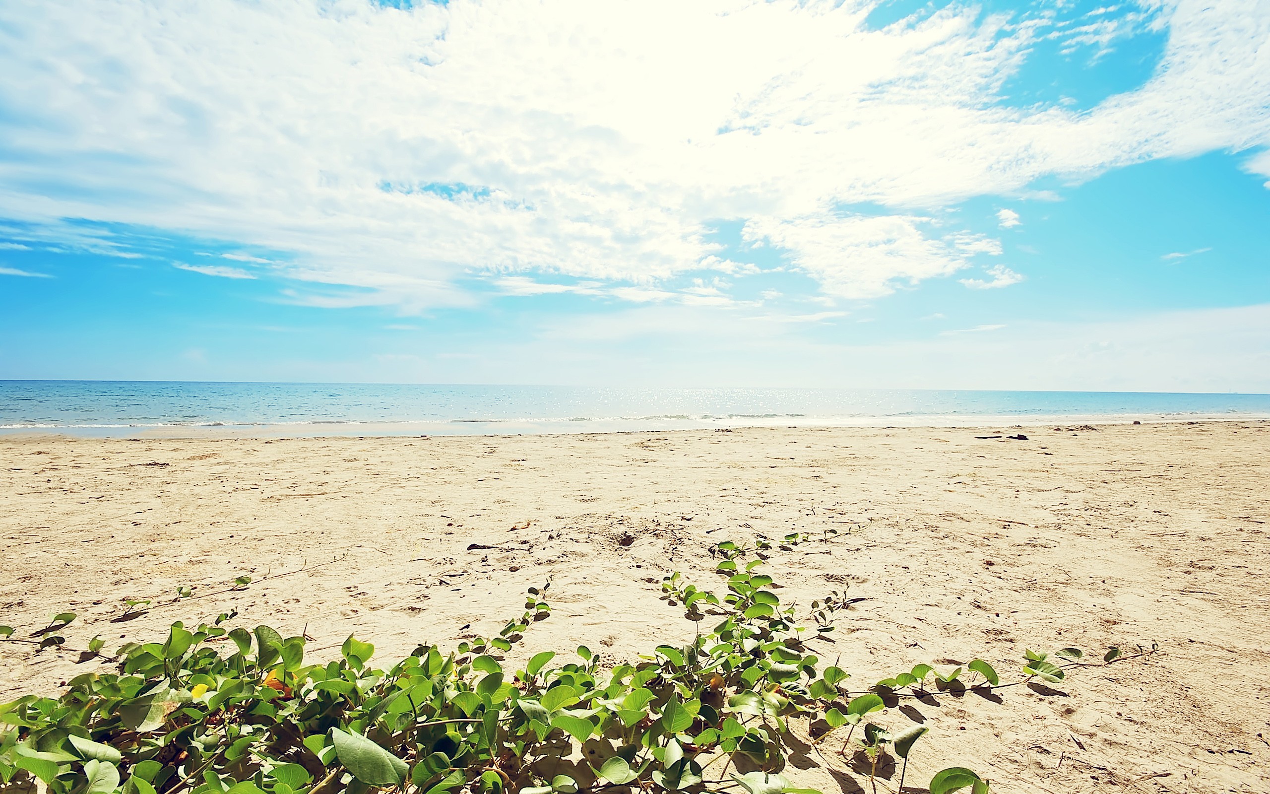 Скачать обои для рабочего стола Морское побережье с вьющейся растительностью и фото