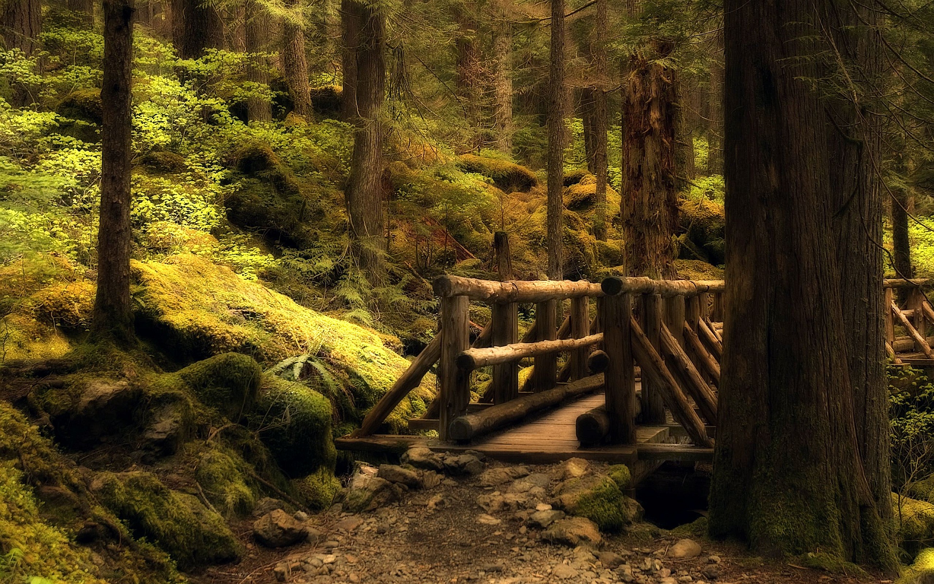 Скачать обои для рабочего стола Мостик в лесу и фото