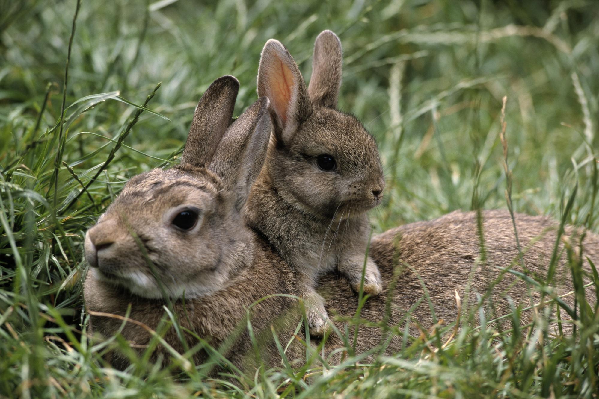 Скачать обои для рабочего стола Mother and Young, European Rabbits и фото