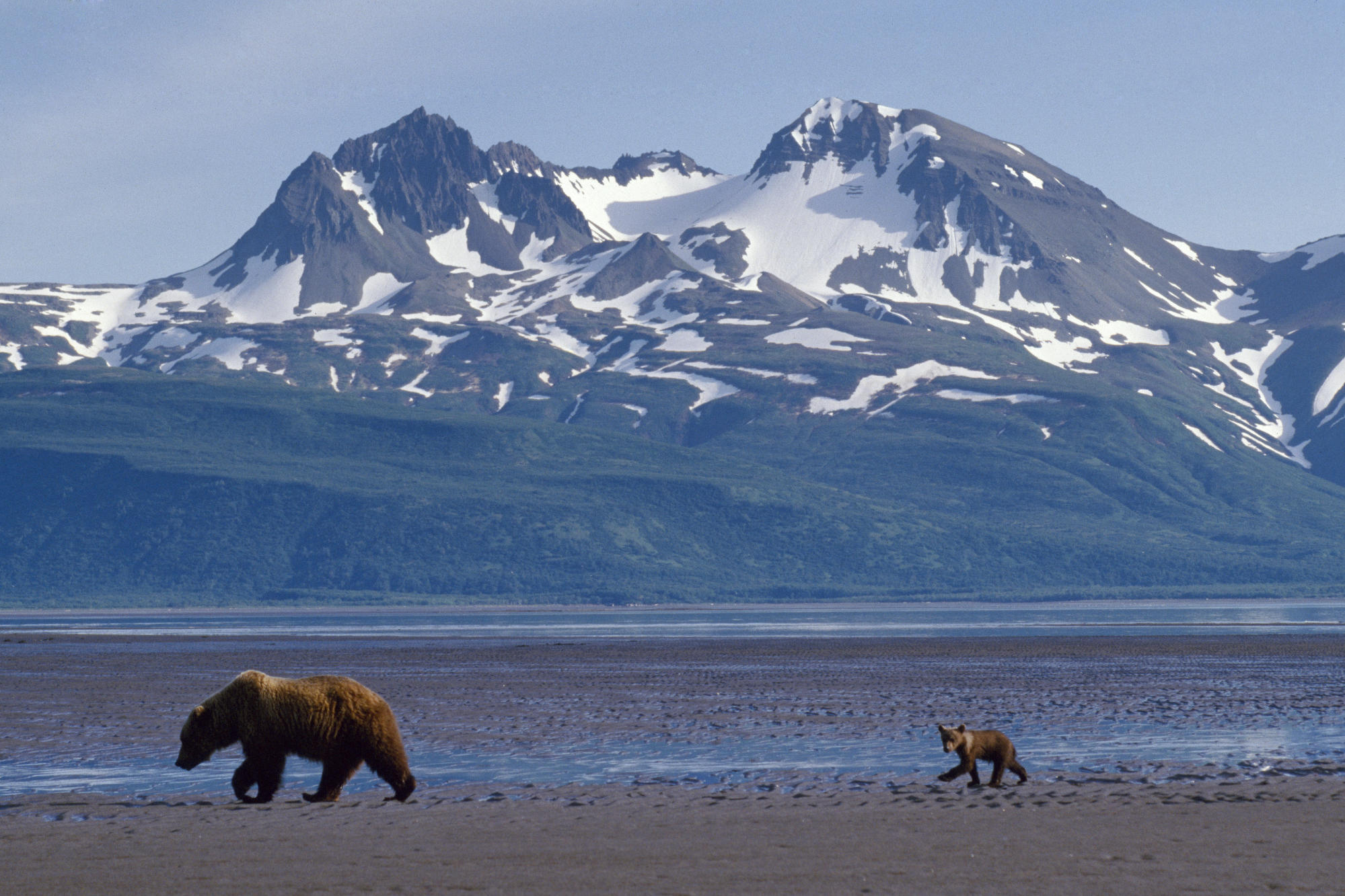 Скачать обои для рабочего стола Mother Bear and Cub, Alaska и фото
