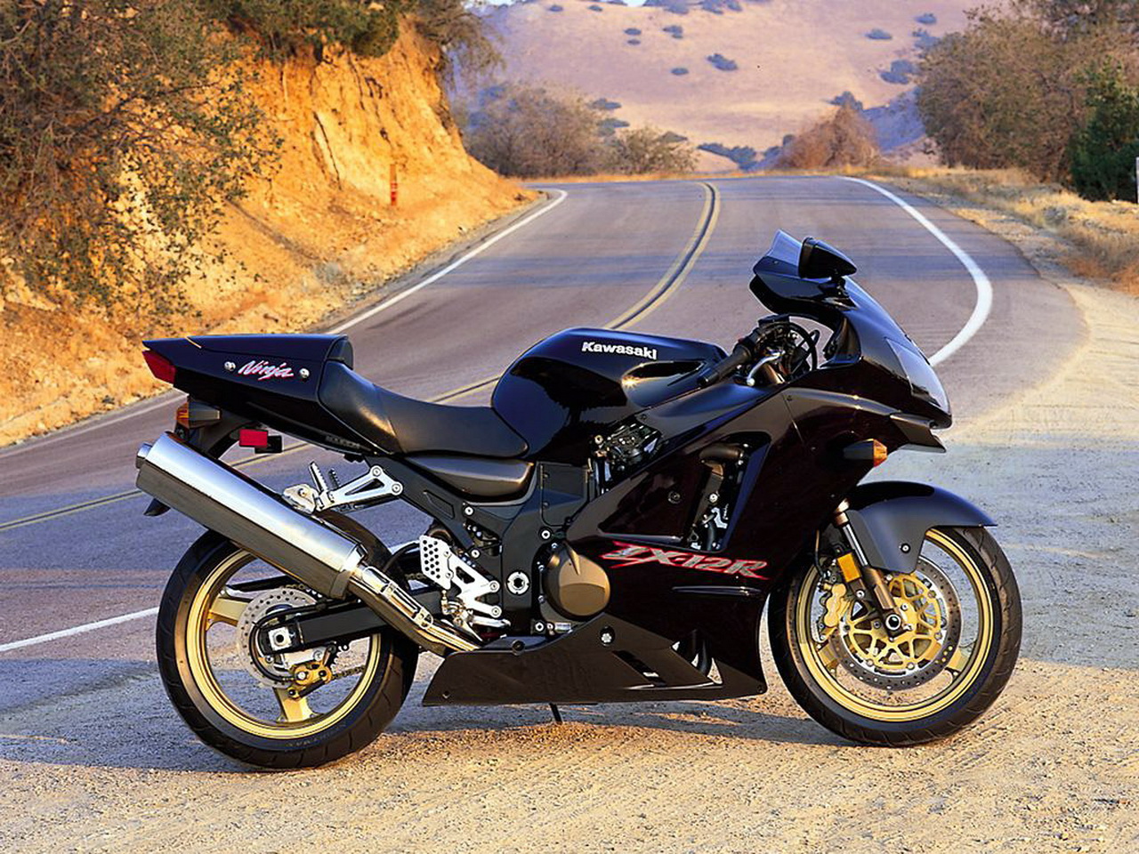 Скачать обои для рабочего стола Мотоцикл Кавасаки на обочине шоссе и фото