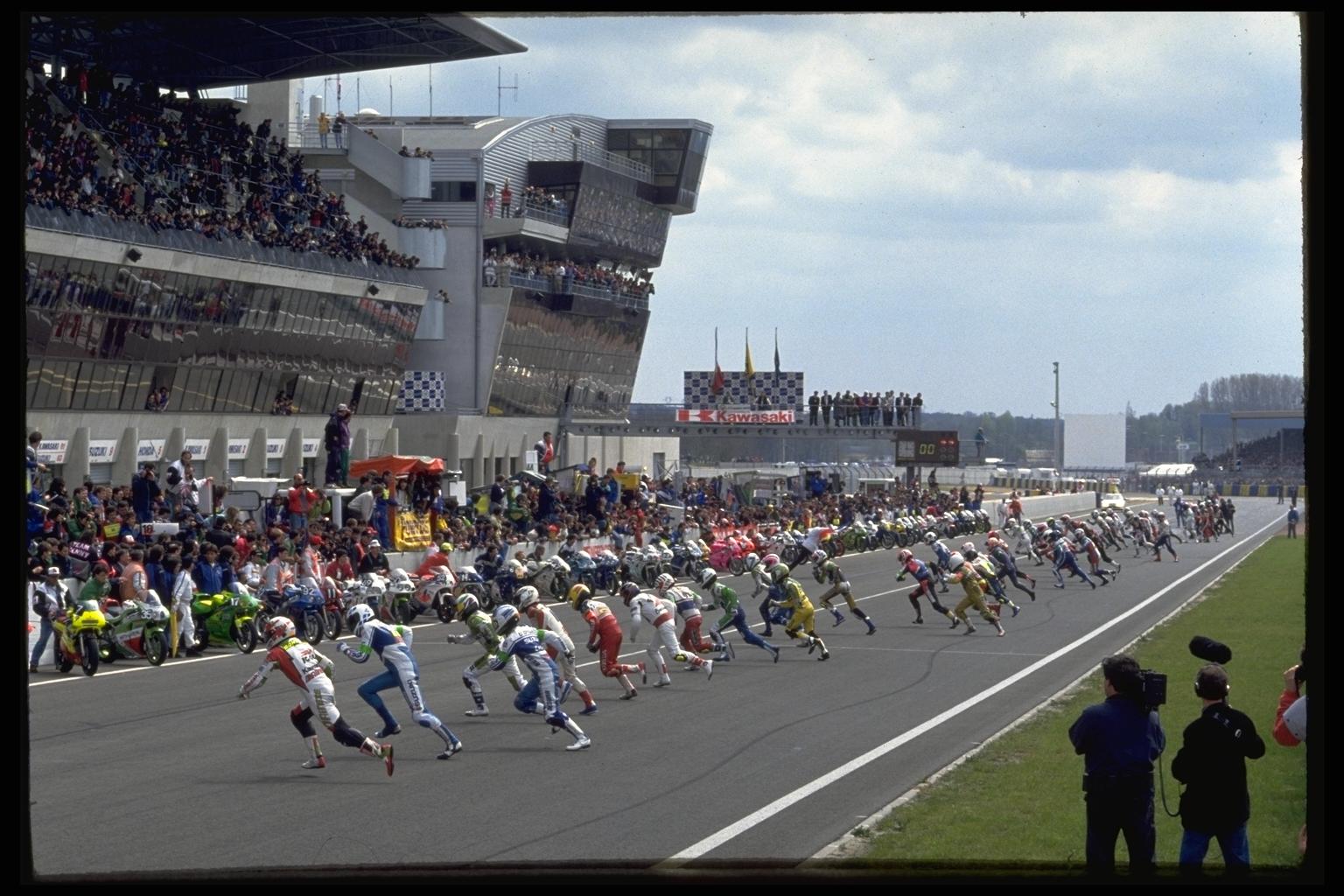 Скачать обои для рабочего стола Мотоциклисты бегут и фото