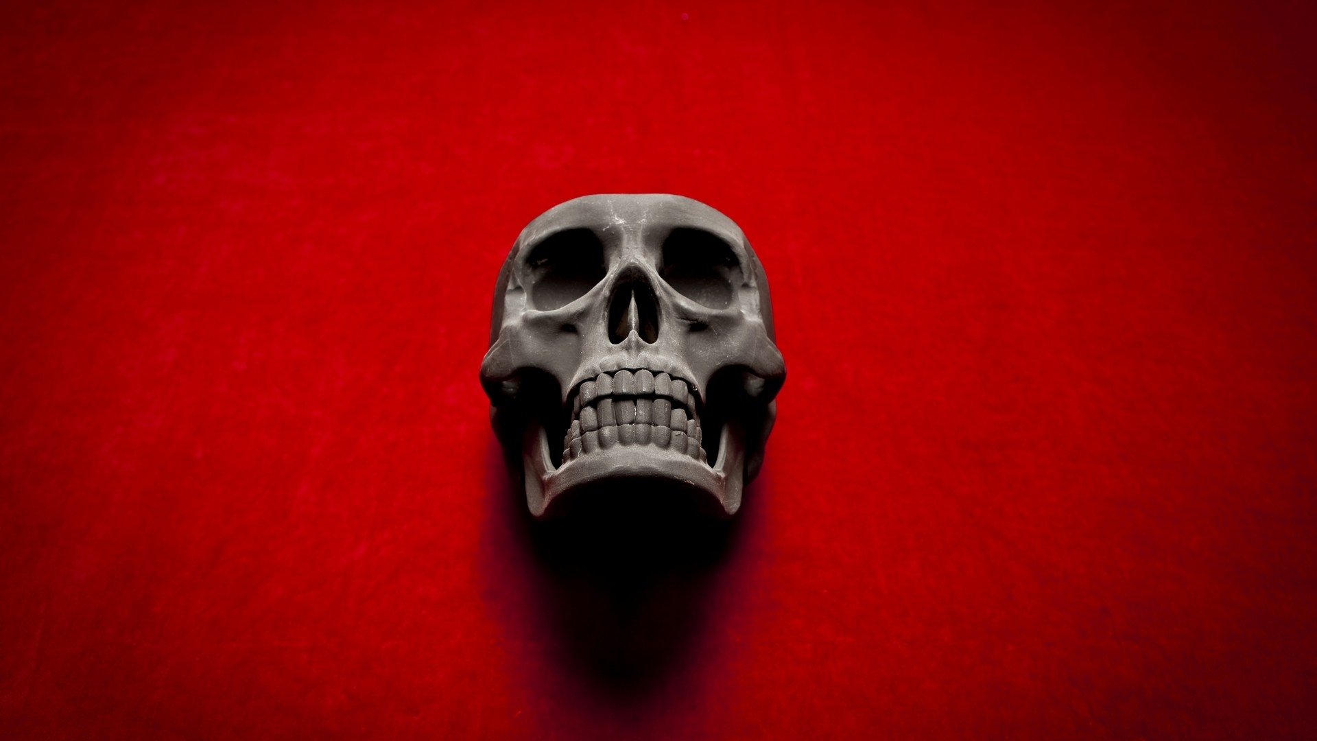 Скачать обои для рабочего стола Муляж черeпа на ярком фоне и фото