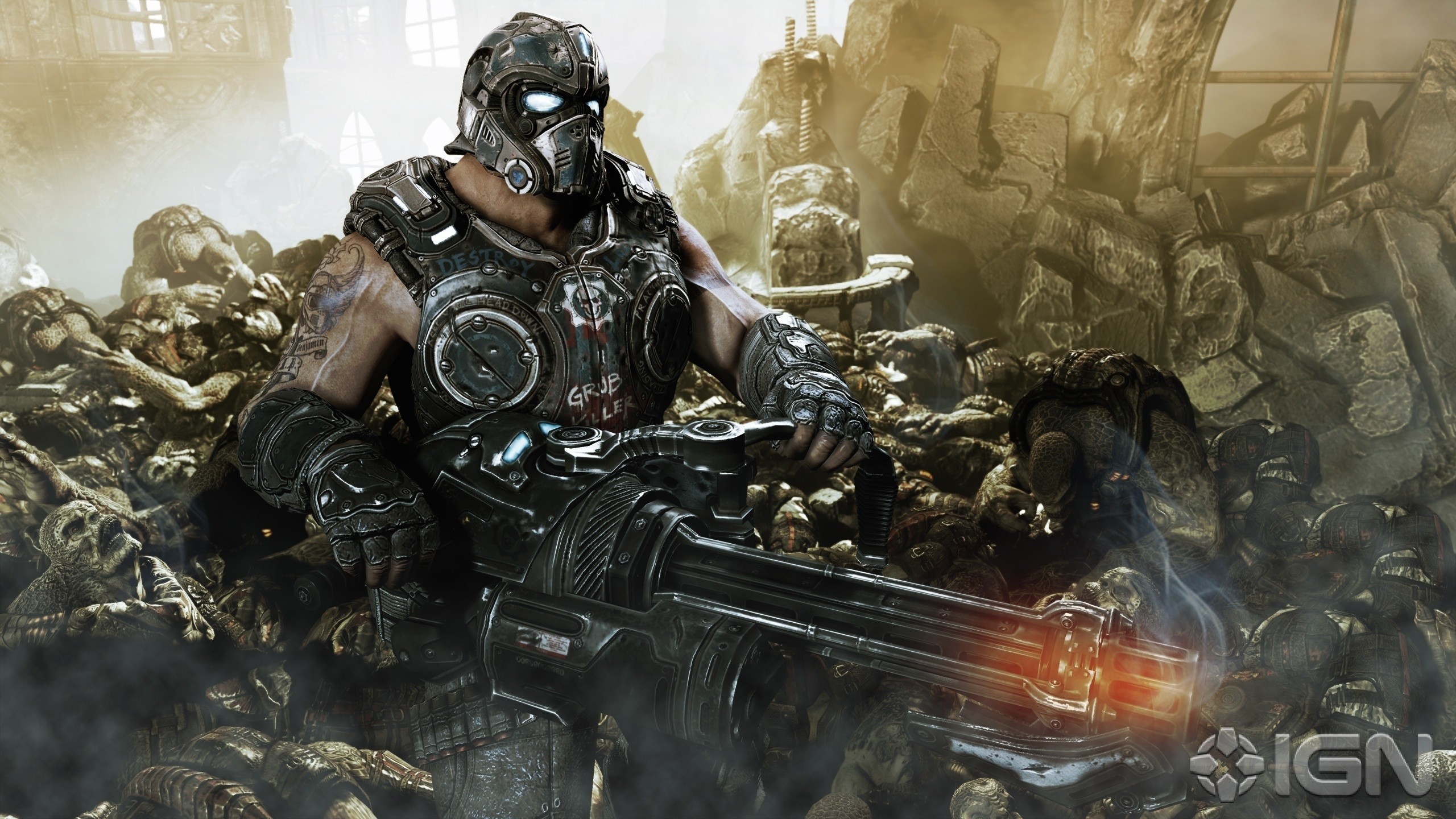 Скачать обои для рабочего стола Мужчина в броне с мощнейшим оружием и фото