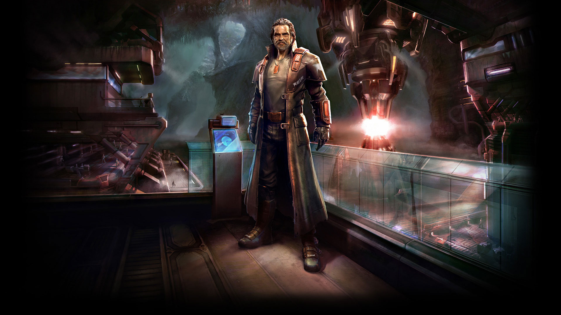 Скачать обои для рабочего стола Мужчина в плаще возле установки и фото