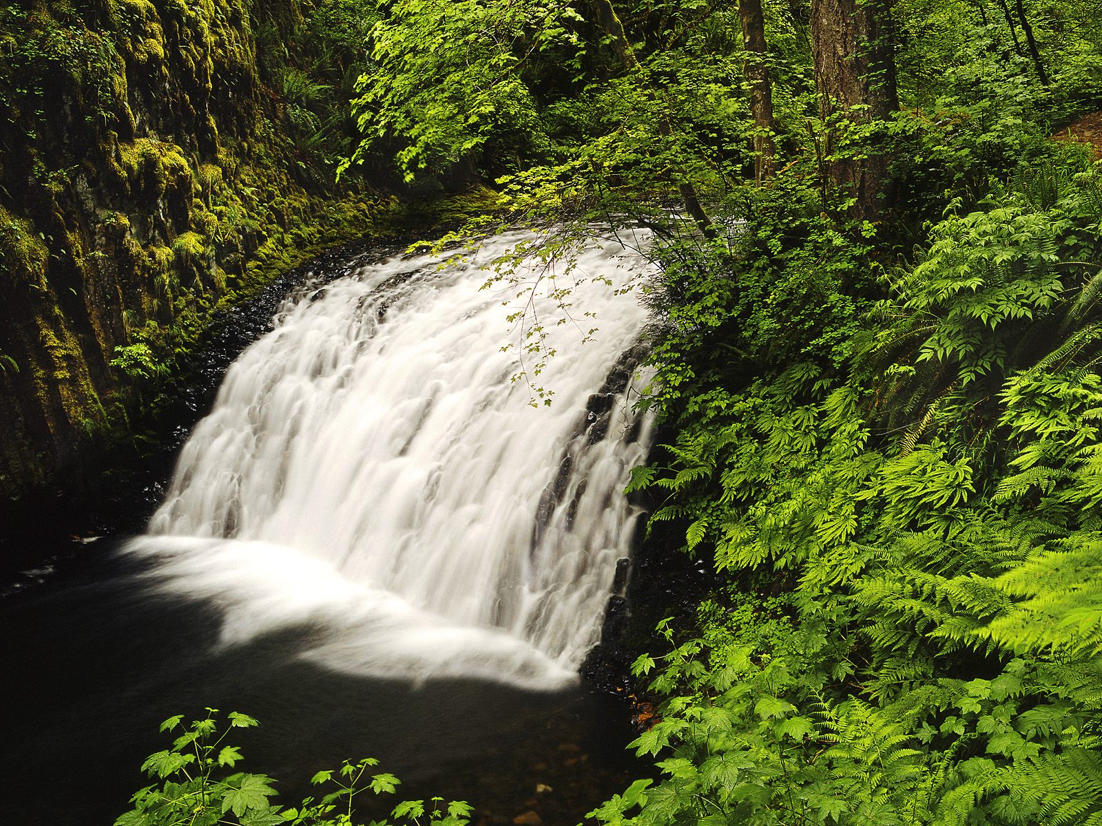 Скачать обои для рабочего стола Мягкий водопад среди зелени и фото