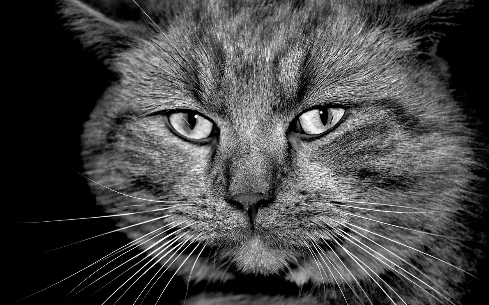 Скачать обои для рабочего стола На черном портрет кошки и фото