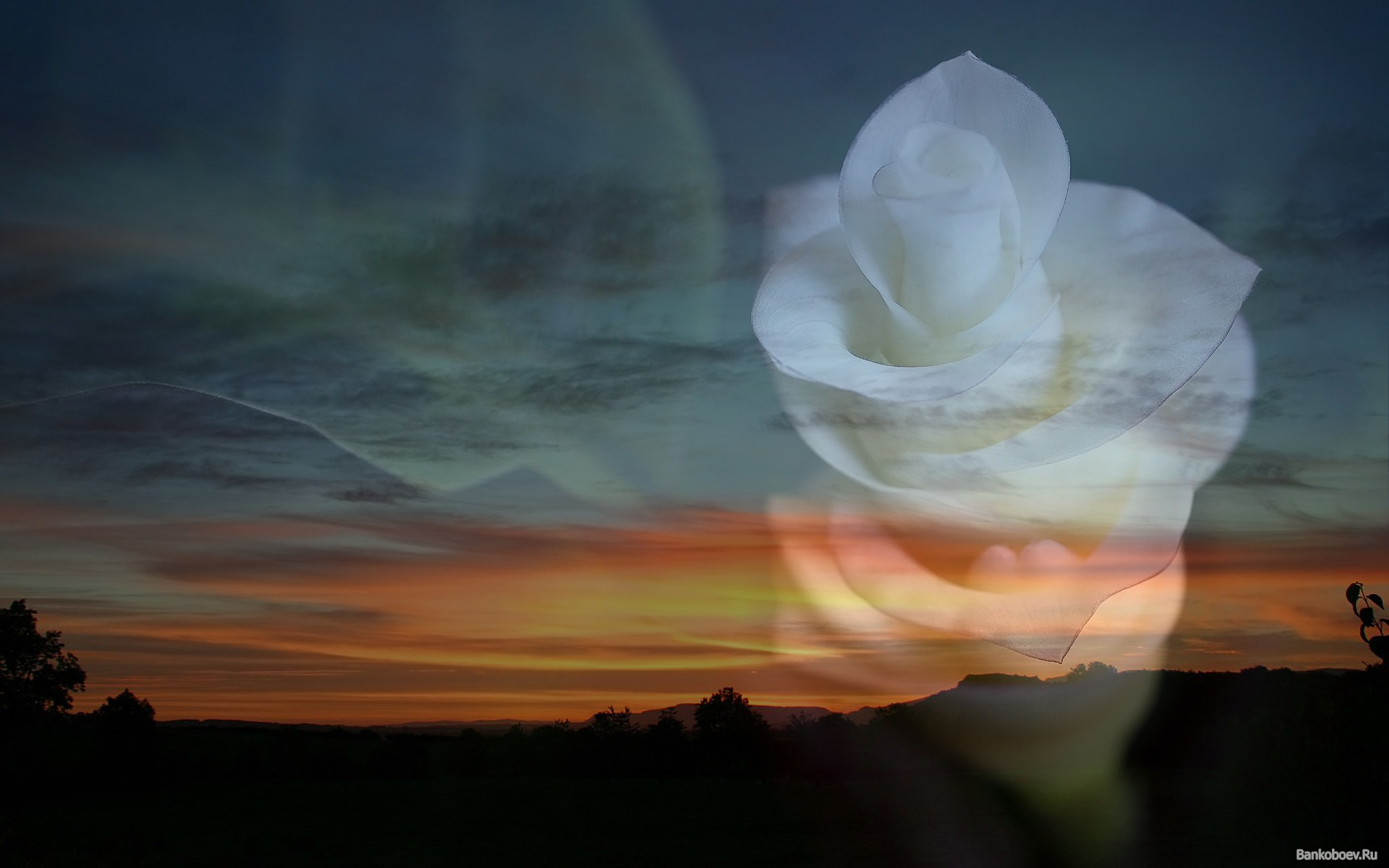 Скачать обои для рабочего стола На фоне заката белая роза и фото