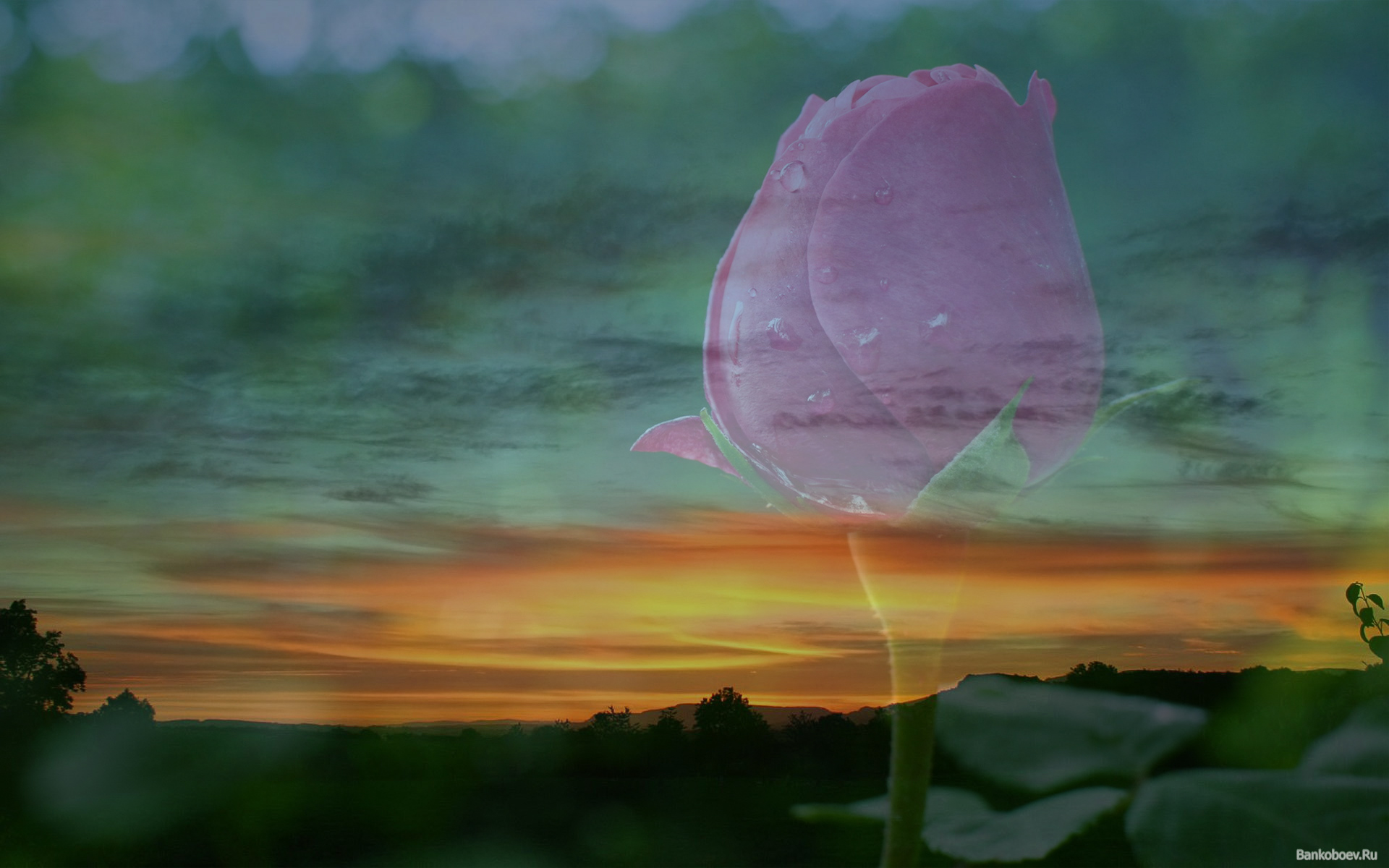 Скачать обои для рабочего стола На фоне заката бутон розы и фото