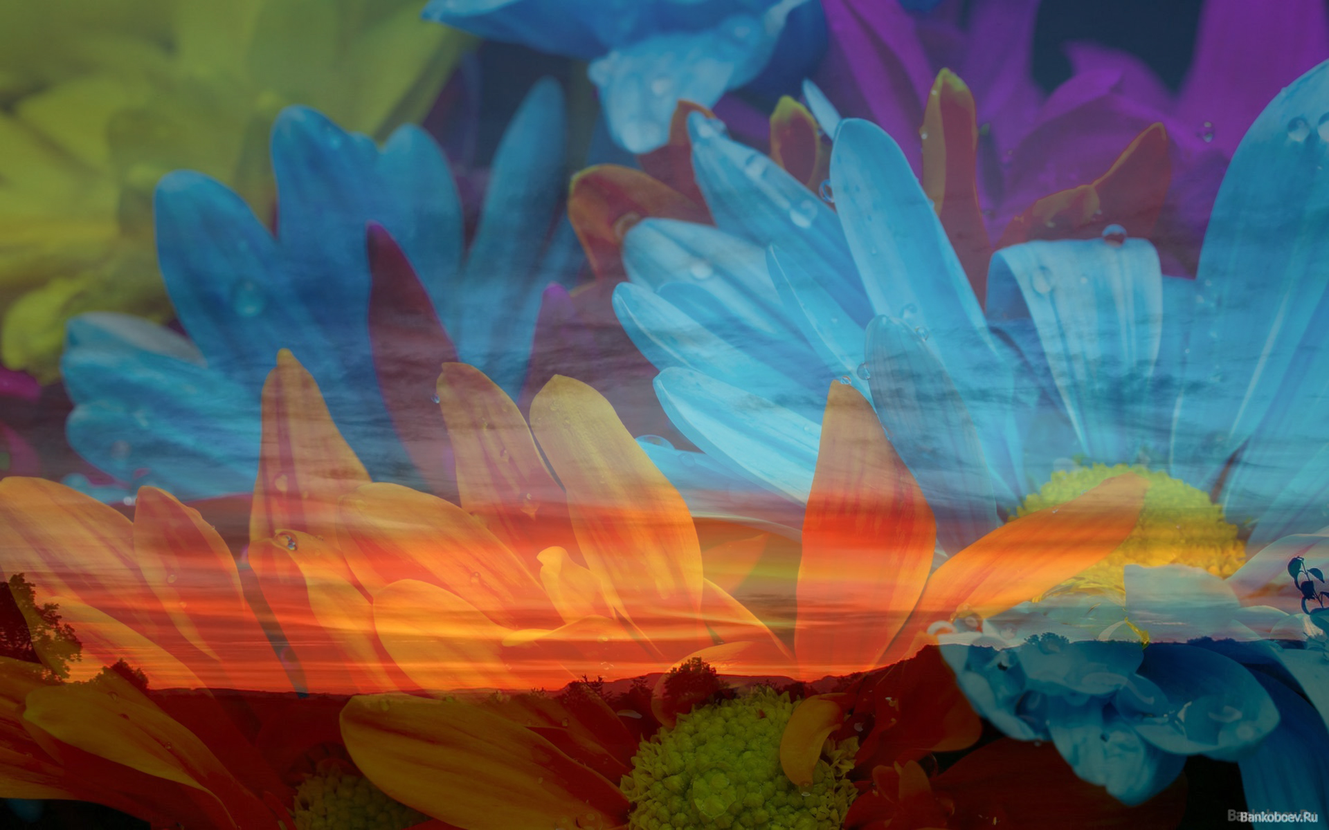 Скачать обои для рабочего стола На фоне заката красивые разноцветые цветы и фото