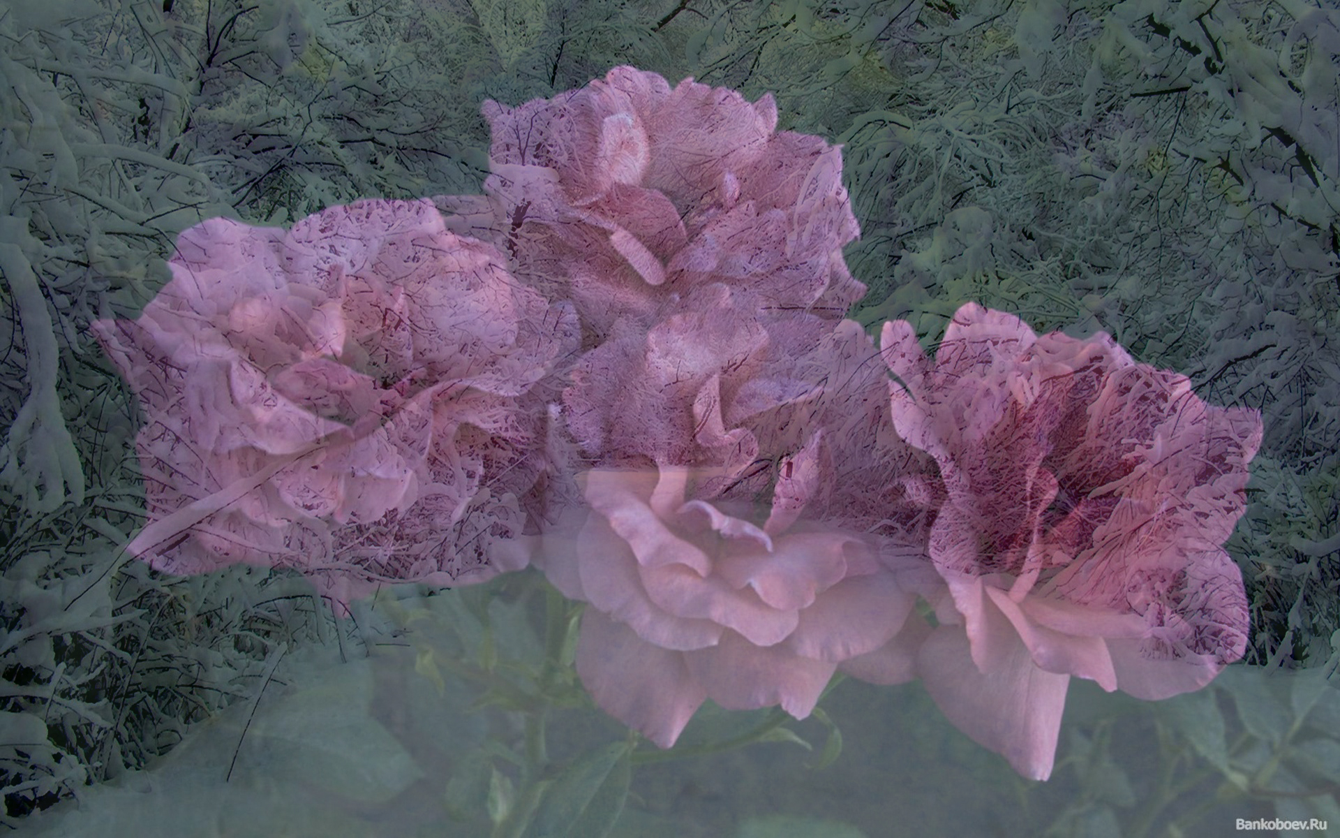 Скачать обои для рабочего стола На фоне заснеженной аллеи четыре цветка и фото