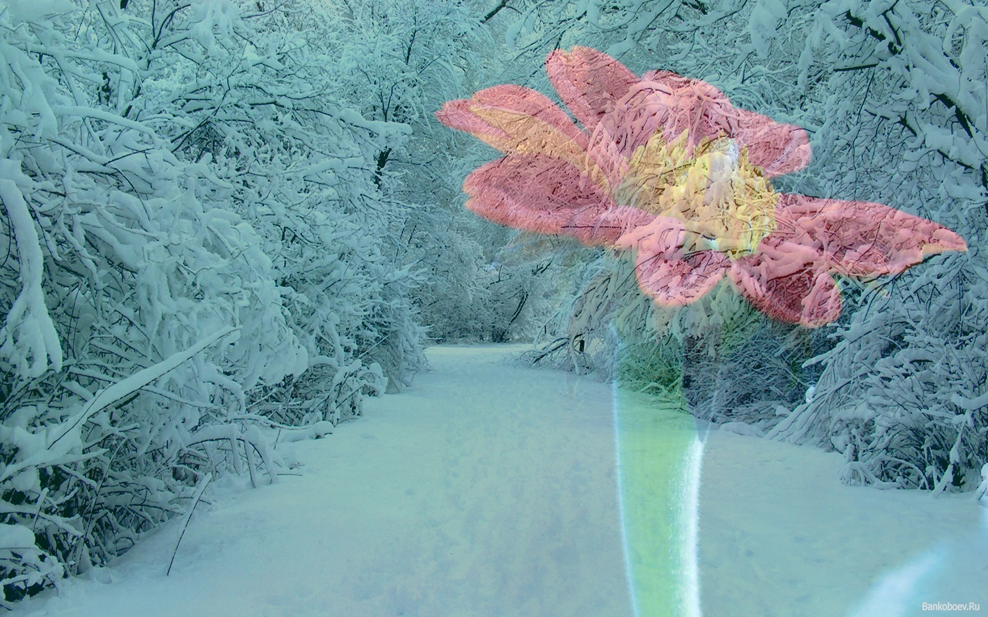 Похожие обои на На фоне заснеженной аллеи цветок красивый:
