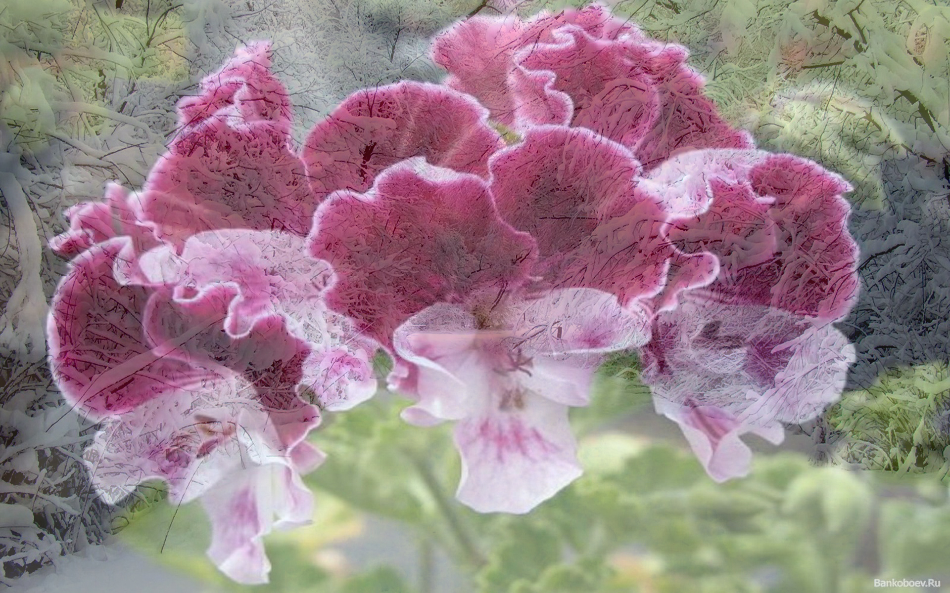 Похожие обои на На фоне заснеженной аллеи паларгония: