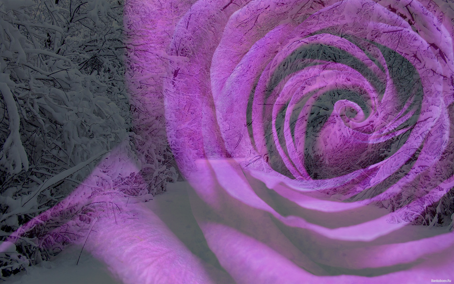 Скачать обои для рабочего стола На фоне заснеженной аллеи серенивая роза и фото