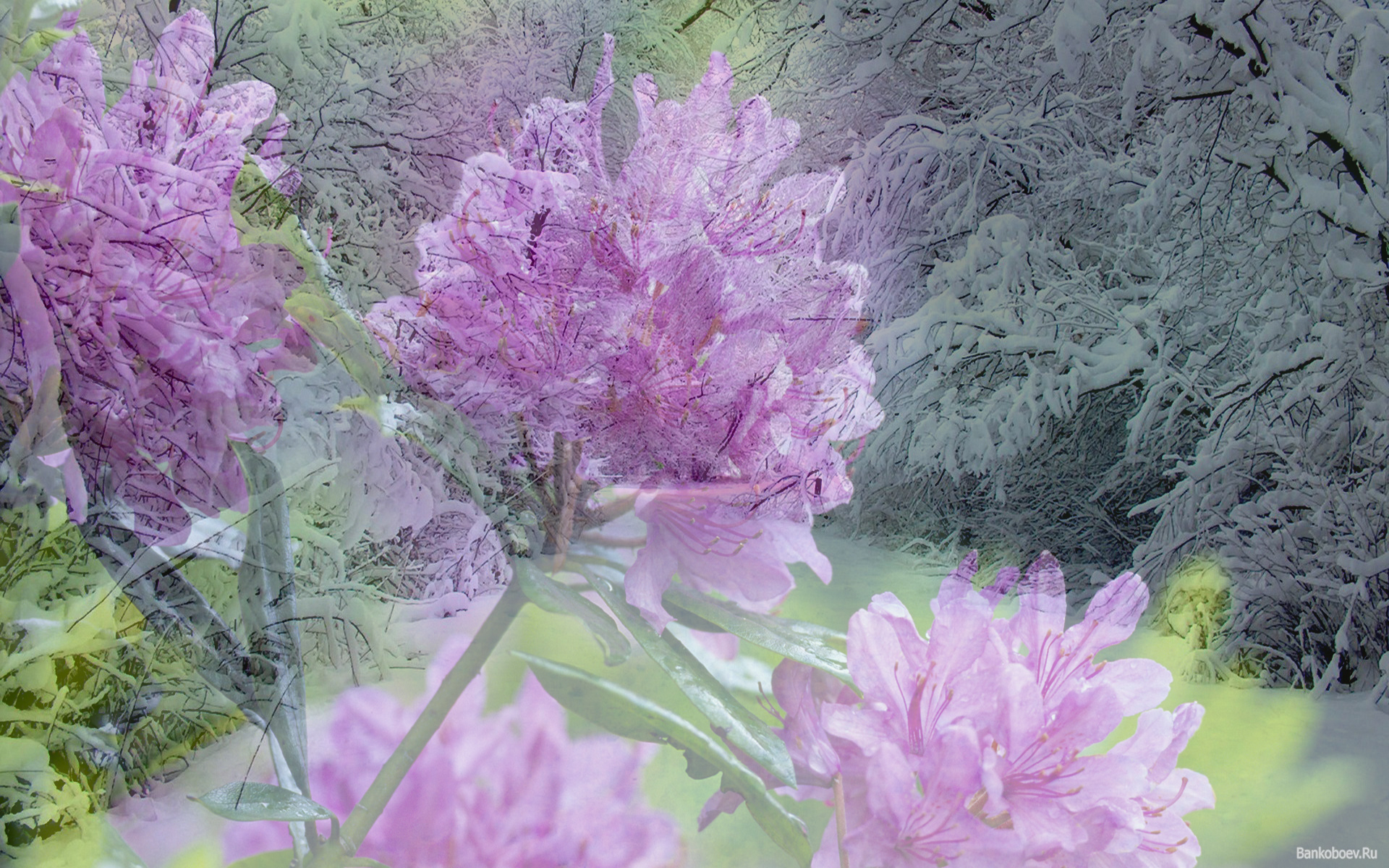 Скачать обои для рабочего стола На фоне заснеженной аллеи соцветия и фото