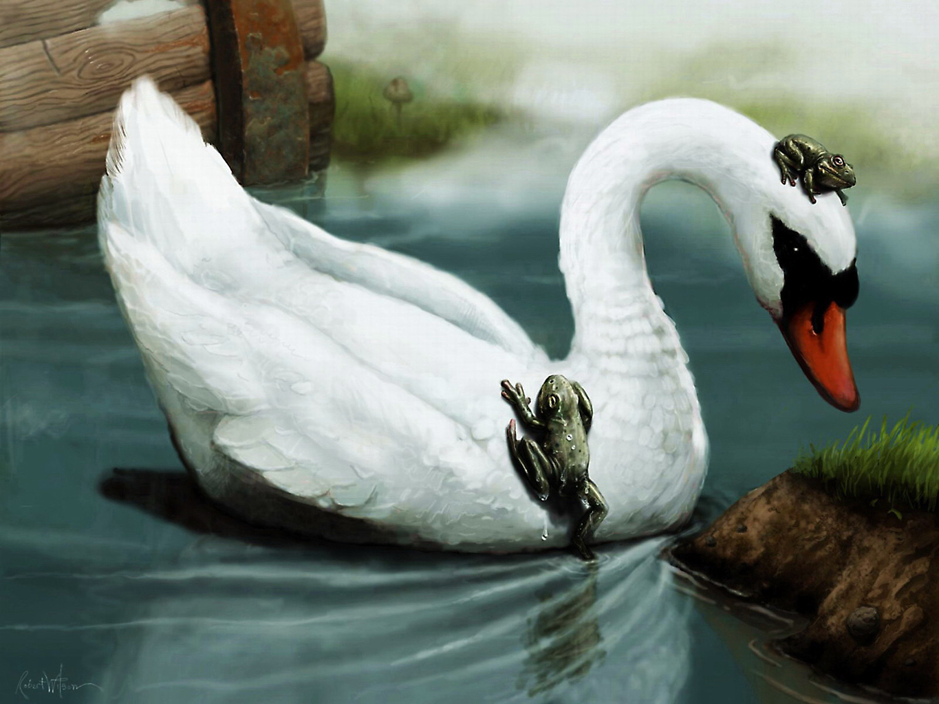 Скачать обои для рабочего стола На гусе лягушки и фото