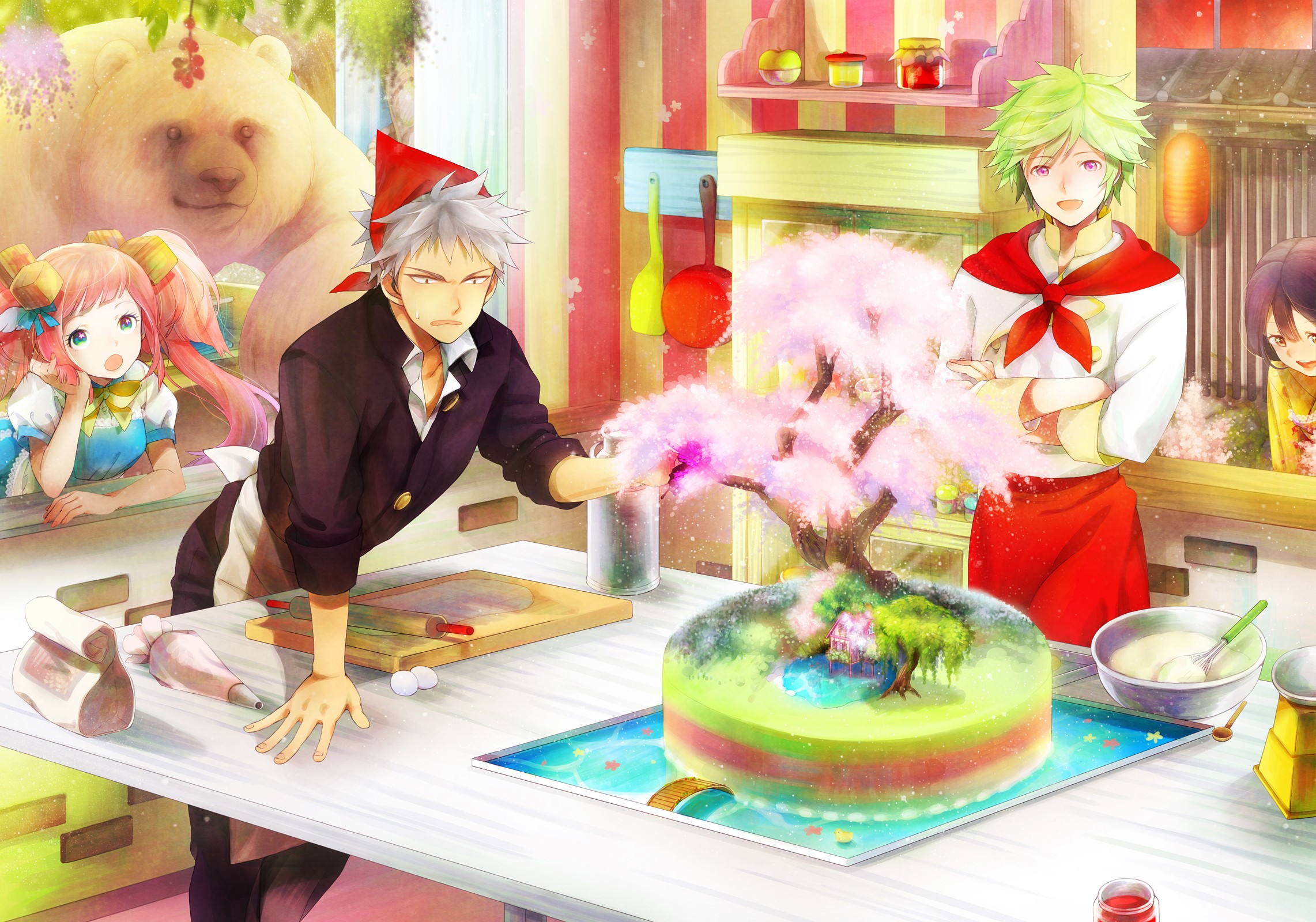 Скачать обои для рабочего стола На кухонном столе торт увенчанный деревом и фото