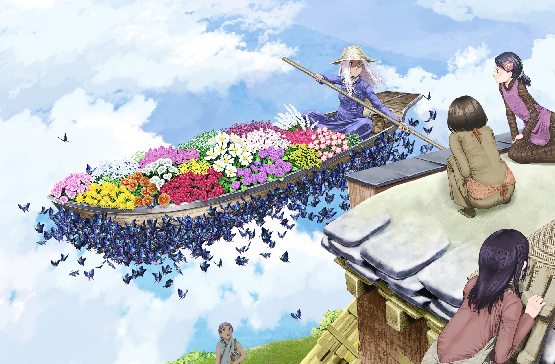 Скачать обои для рабочего стола На лодке с цветами и фото