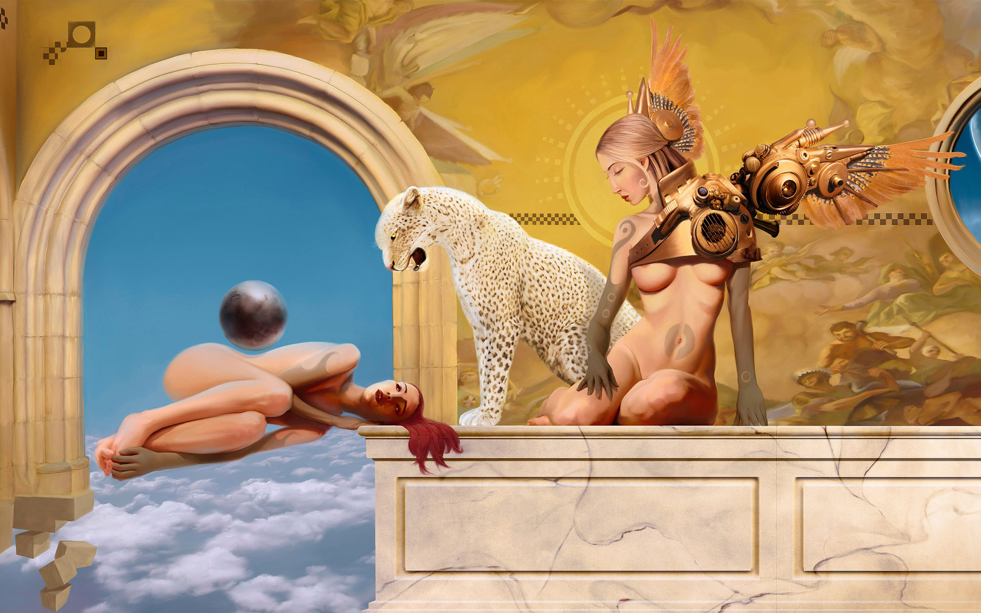 Скачать обои для рабочего стола На небесах девушки и гепард и фото