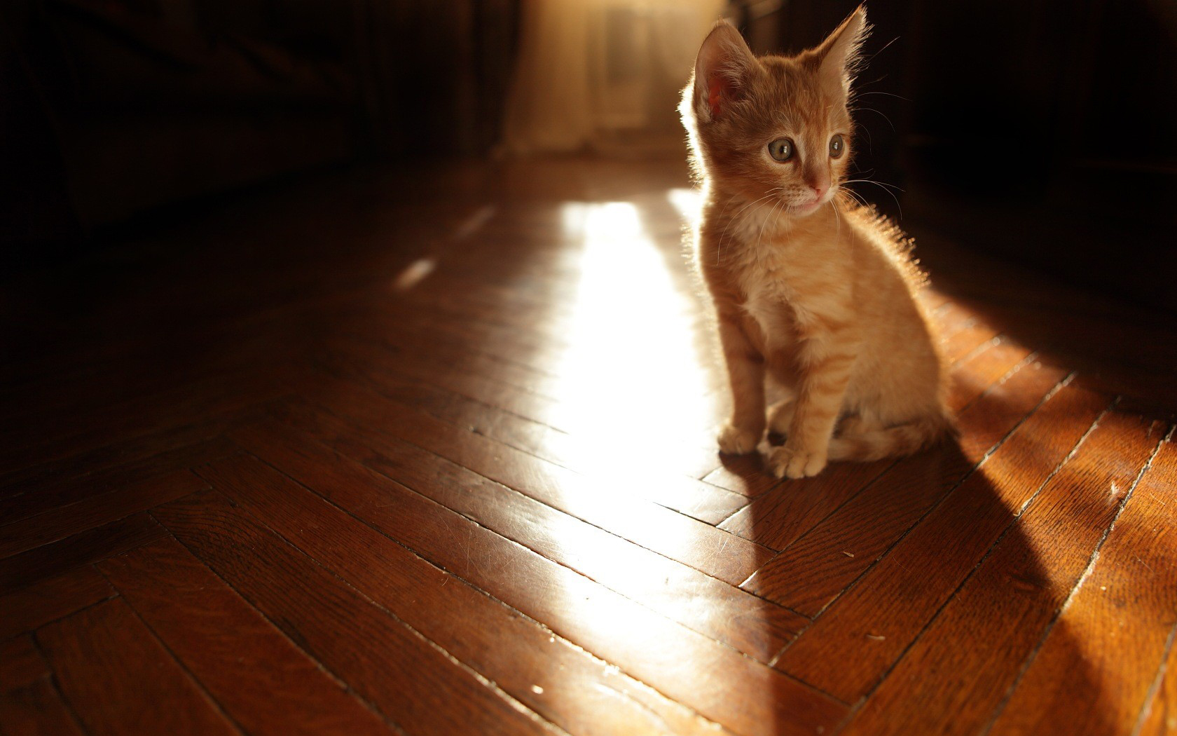 Скачать обои для рабочего стола На паркете рыжий котенок и фото