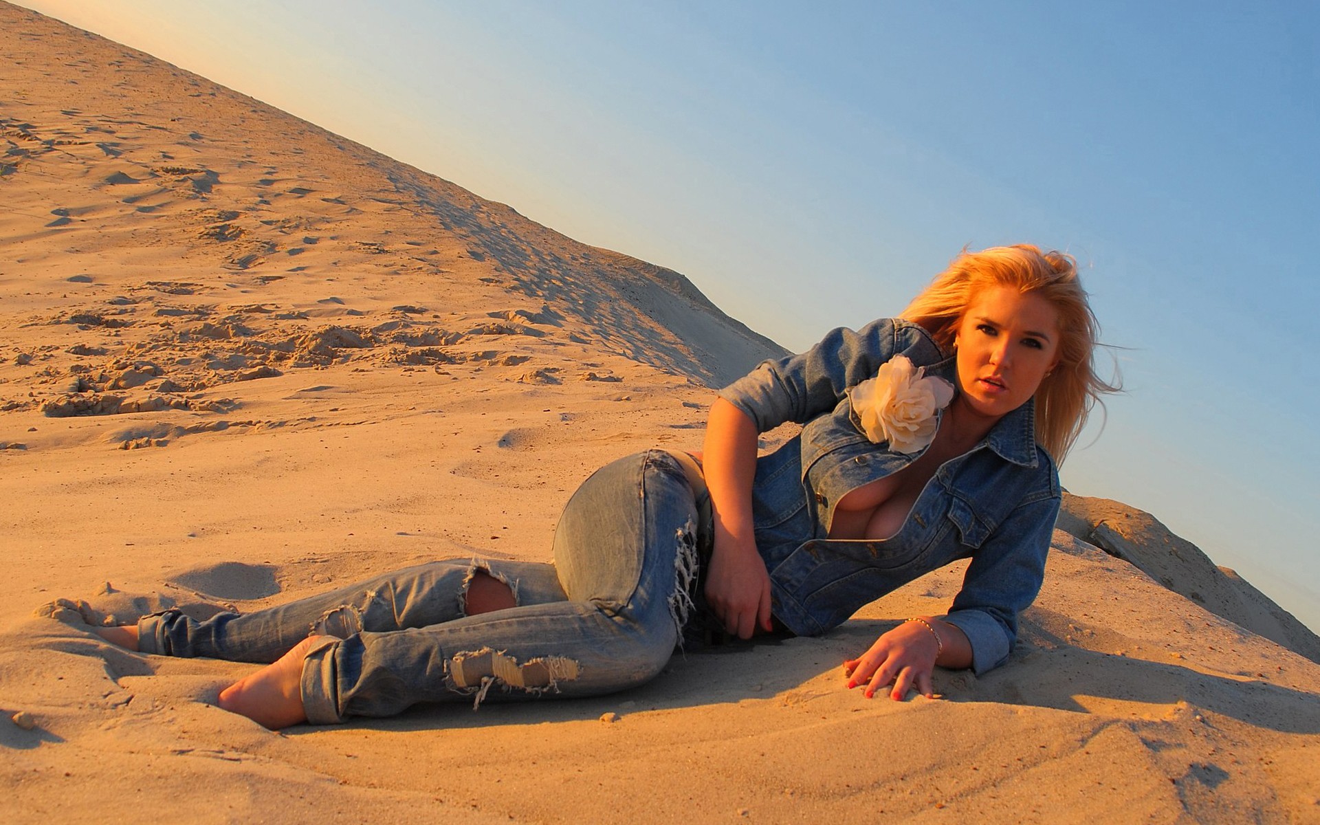 Скачать обои для рабочего стола На пeске в джинсовом костюме и фото