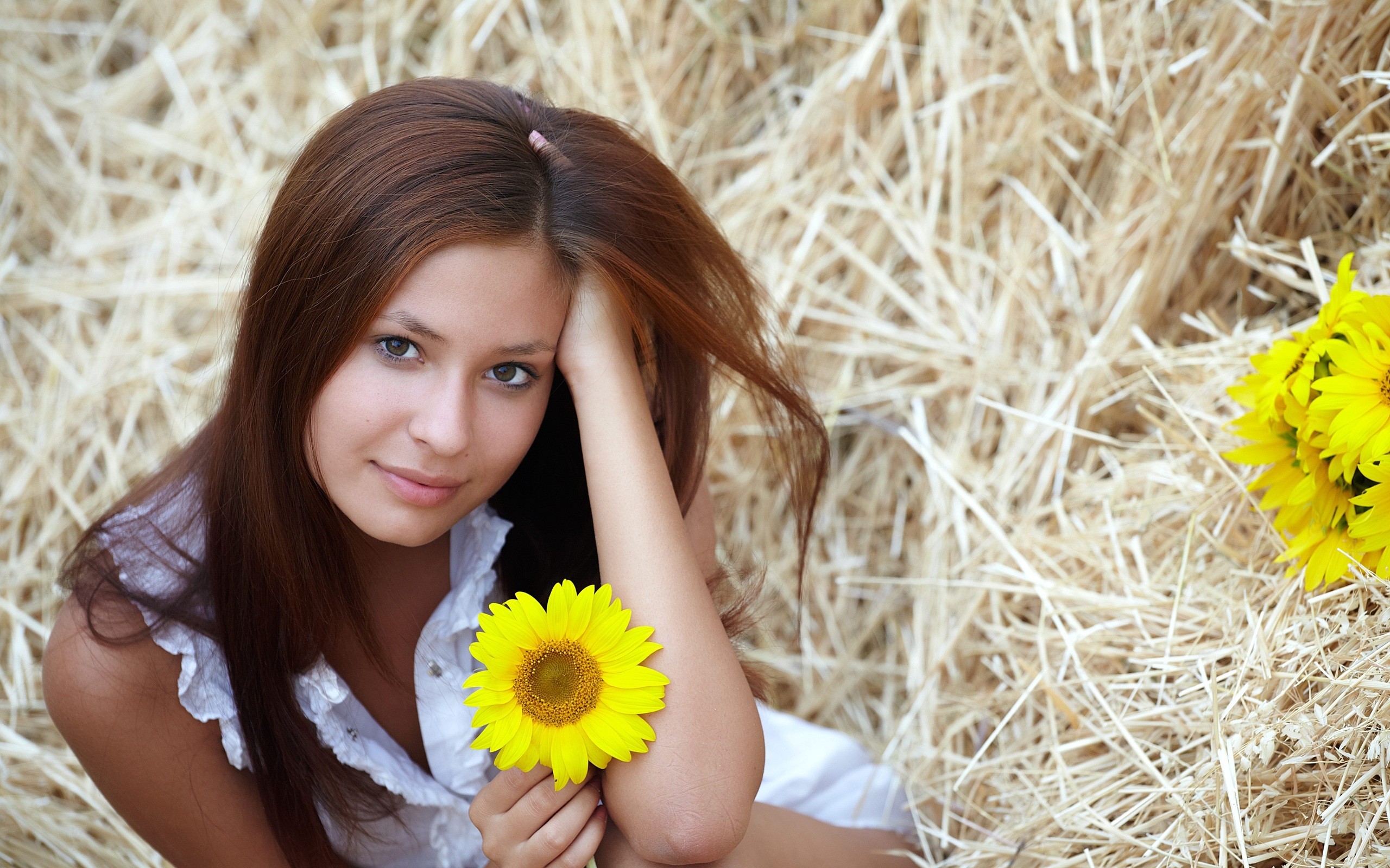 Скачать обои для рабочего стола На сене с желтыми цветaми и фото