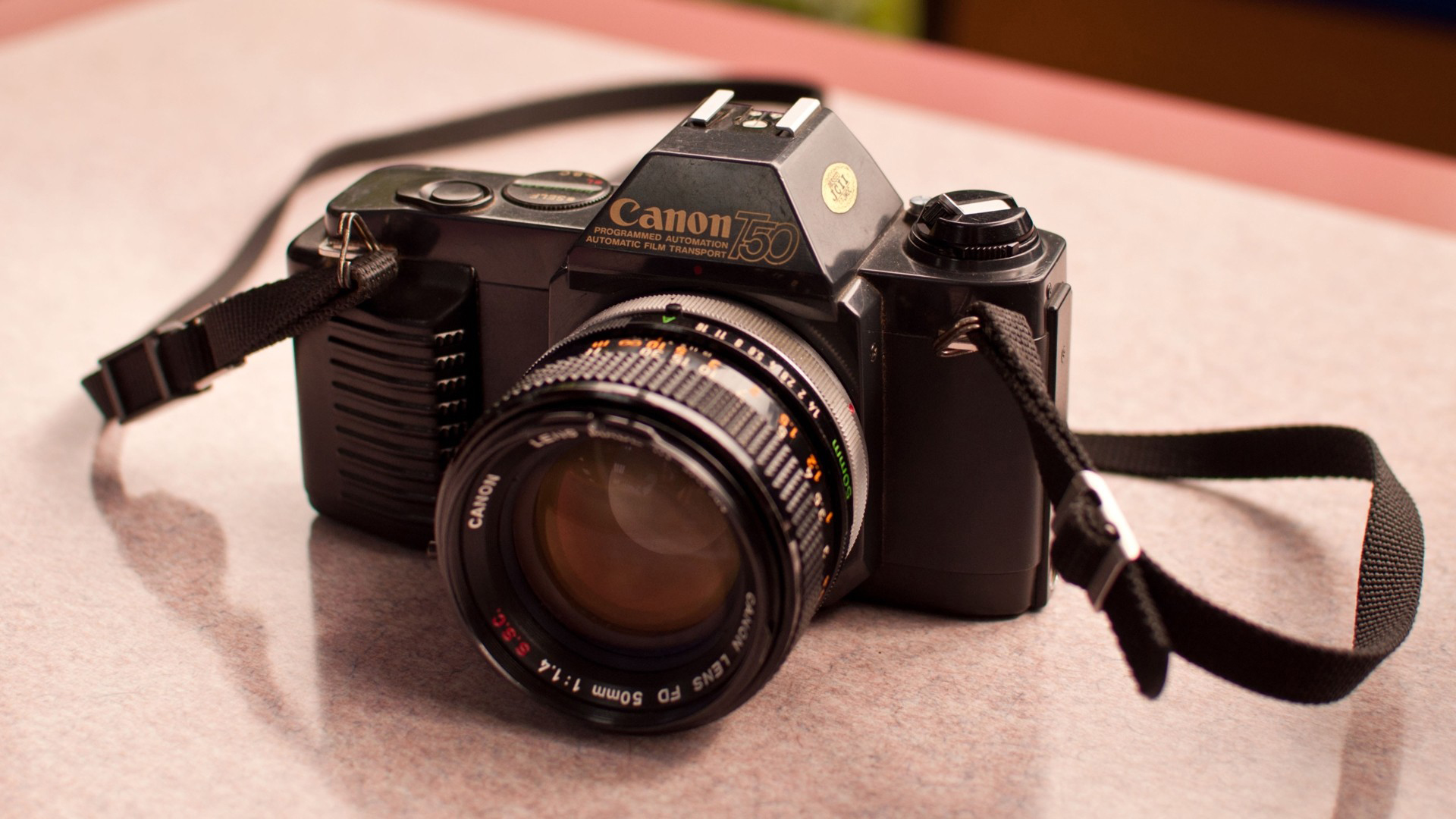 Скачать обои для рабочего стола На столе фотоаппарат кенон и фото