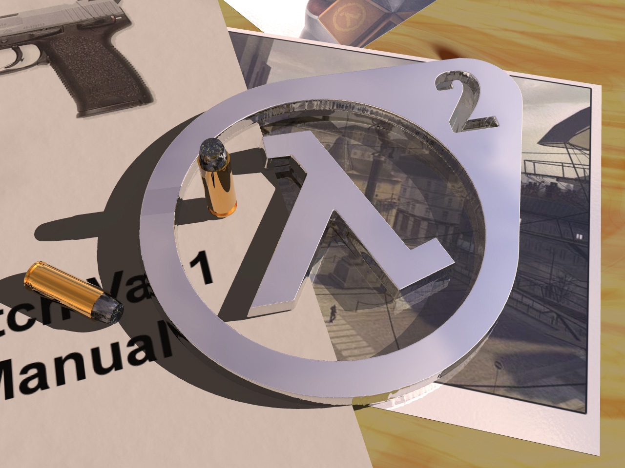 Скачать обои для рабочего стола На столе журнал и патроны и фото