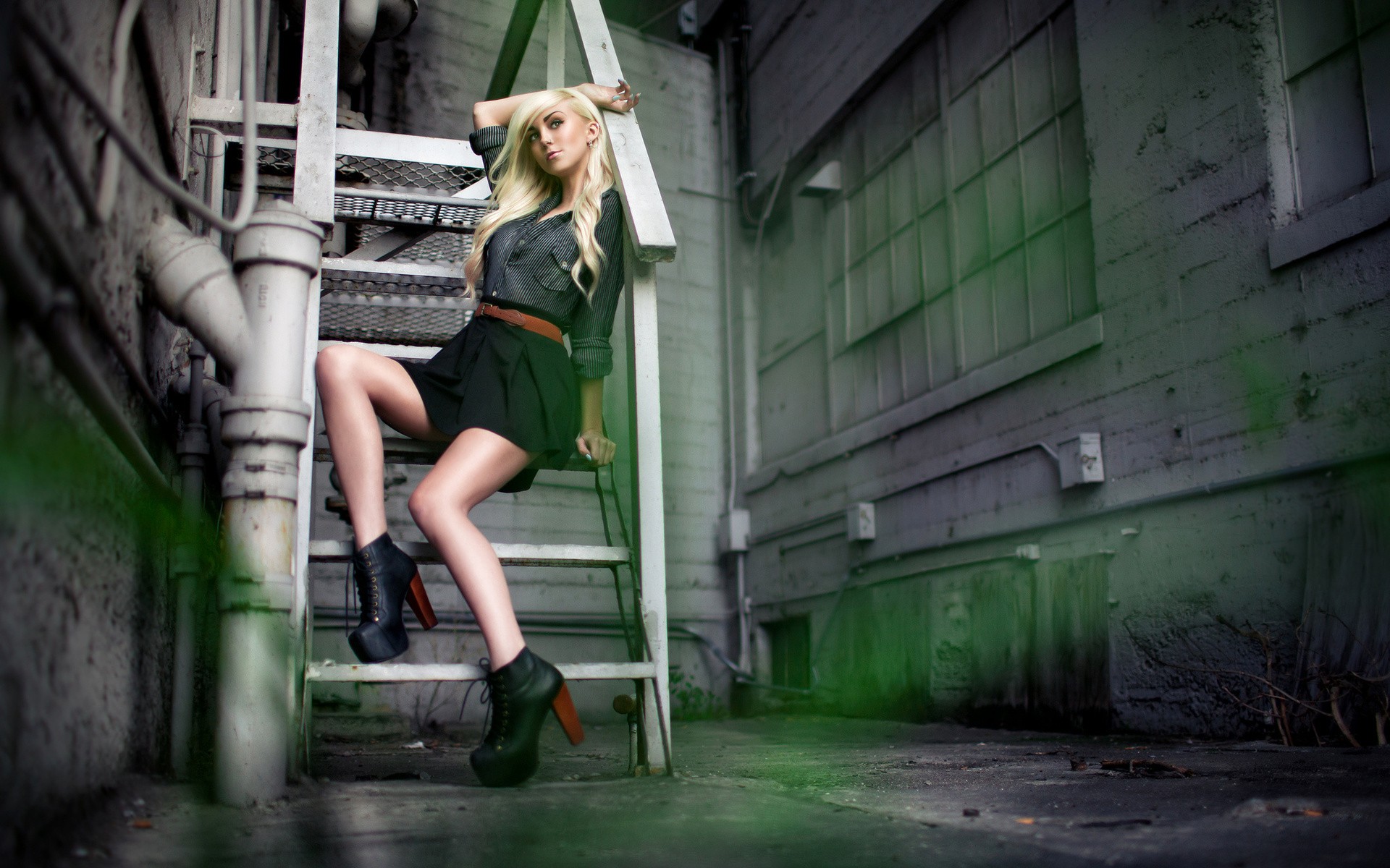 Скачать обои для рабочего стола На ступенькaх металлических блондинка и фото