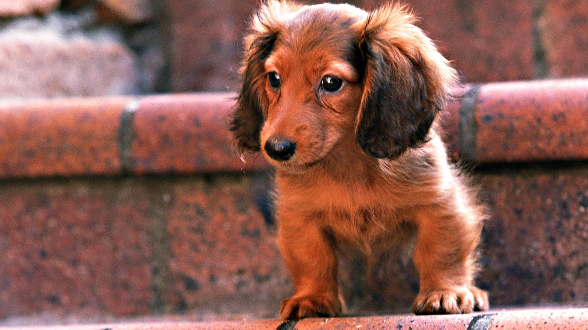 Скачать обои для рабочего стола На ступеньке стоит песик и фото